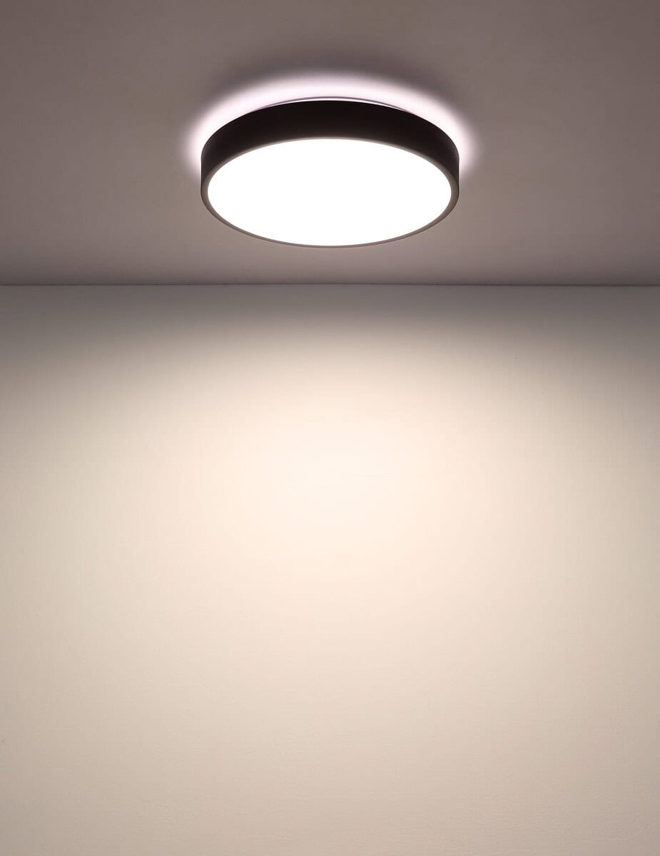 Okrugla plafonska lampa NIELSEN kombinuje moderan dizajn sa pametnom tehnologijom. Sa svojim ravnim kućištem od mat bijelog lakiranog metala i elegantnom bojom od mat crne plastike sa opalnim difuzorom, dodaje elegantne akcente svakoj prostoriji. Integrirana LED tehnologija isporučuje moćnu svjetlosnu snagu od 1500 lumena, a istovremeno ostaje energetski efikasna. Klizni prekidač na bazi vam omogućava da podesite temperaturu boje u tri faze – od tople bijele (3000 K) do neutralne bijele do dnevne svijetlo bijele (6000 K). Vaša željena postavka se može fiksirati za dosljedan ambijent osvjetljenja. Sa prečnikom od 378 mm, NIELSEN je idealan za dnevne sobe, hodnike ili kancelarije. Njegov ravan dizajn ga čini savršenim za sobe sa niskim stropovima. Svjetlo dolazi s integriranim LED modulom i spremno je za trenutnu upotrebu.