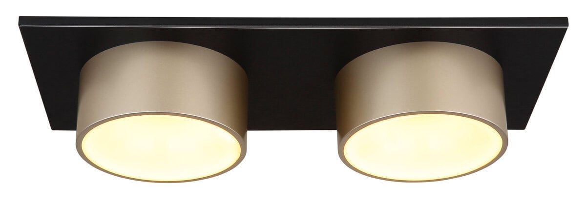 RAYMOND plafonska lampa – tehnički dizajn sa elegantnim izgledom. Pravougaona plafonska lampa RAYMOND impresionira svojim modernim, tehničkim dizajnom. Tijelo izrađeno od mat crnog metala u kombinaciji sa plastikom antracit boje stvara suvremeni izgled koji se savršeno uklapa u moderne prostorije. Dva okrugla reflektora pružaju ciljano osvjetljenje i postavljaju stilske akcente. Sjenilo izrađeno od mat plastike zlatne boje i opal plastike osigurava ravnomjernu raspodjelu svjetlosti bez odsjaja uz ugodnu temperaturu boje od 3000 K. S dimenzijama L: 460 mm, Š: 150 mm, lampa se idealno uklapa u male i srednje prostorije i istovremeno je funkcionalna i dekorativna. Integrisana LED tehnologija garantuje visoku energetsku efikasnost i dugovečnost. RAYMOND je savršen izbor za sve koji žele spojiti moderan dizajn i visokokvalitetnu tehnologiju u jednoj lampi.