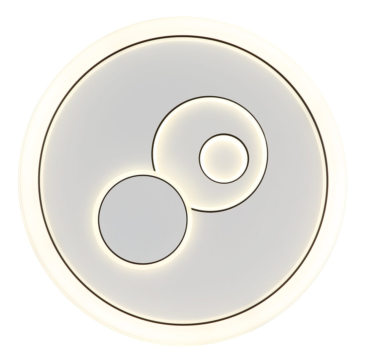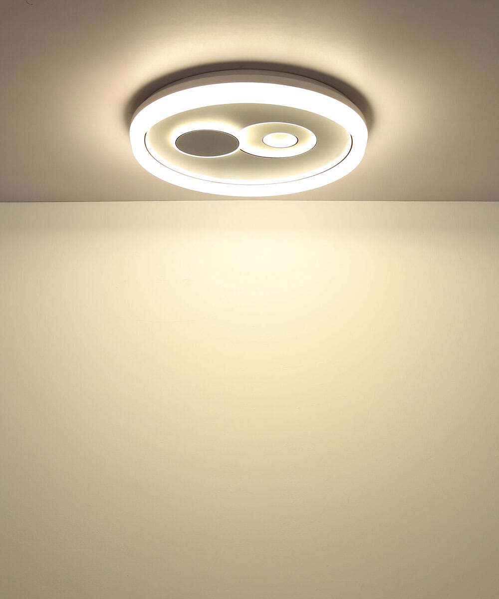 Okrugla plafonska lampa RUIZ I kombinuje jasan dizajnerski jezik sa ukrasnim akcentima. Pričvršćeni prstenovi mu daju moderan, trodimenzionalni izgled koji sa ukusom nadopunjuje moderne životne prostore. Tijelo izrađeno od mat bijelog metala i bijele plastike stvara harmoničan kontrast u odnosu na opal akrilnu nijansu i crne plastične detalje. Integrisana LED tehnologija omogućava fleksibilno podešavanje boje svetla zahvaljujući CCT funkciji – od tople bele svetlosti sa 3000 K do dnevne bele svetlosti sa 6500 K. To znači da se osvetljenje može individualno regulisati u zavisnosti od raspoloženja ili doba dana. Funkcija praktične memorije čuva posljednju odabranu postavku i time osigurava još veću udobnost u svakodnevnom životu. RUIZ I ne impresionira samo svojim modernim izgledom, već i svojom funkcionalnošću i efikasnošću. Idealno za dnevne sobe ili spavaće sobe – LED dioda je uključena i spremna za upotrebu za elegantno, prilagodljivo svjetlo pritiskom na dugme.