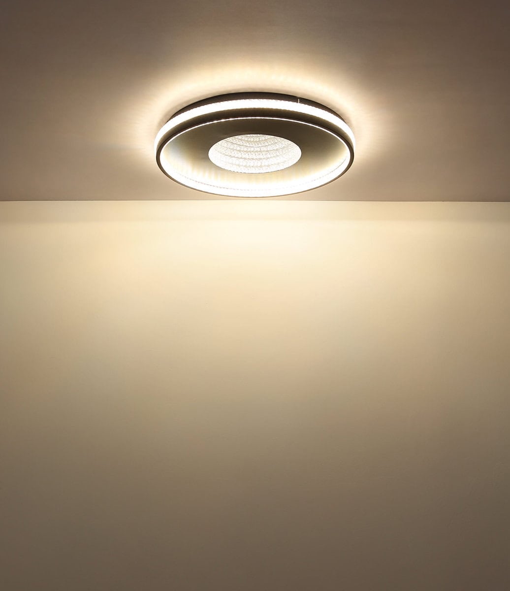 METAL BLACK MAT plafonska lampa kombinuje najnoviju tehnologiju sa elegantnim dizajnom. Tijelo izrađeno od mat crnog metala pruža stilsku osnovu za fascinantnu nijansu od prozirnih plastičnih kristala. Zrcalna plastika stvara impresivan 3D efekat tunela koji svakoj prostoriji daje posebnu atmosferu. Lako možete upravljati svjetlom pomoću priloženog daljinskog upravljača. Može se zatamniti i nudi brojne opcije, uključujući memorijsku funkciju koja čuva željenu postavku i mogućnost zaključavanja boja. CCT od 2700K do 6500K omogućava da se svjetlost po potrebi mijenja od toplog do hladnog svjetla. Uz integriranu LED tehnologiju, svjetlo nudi ne samo atraktivnu rasvjetu, već i visoku energetsku efikasnost, koja je neophodna u modernim životnim prostorima.