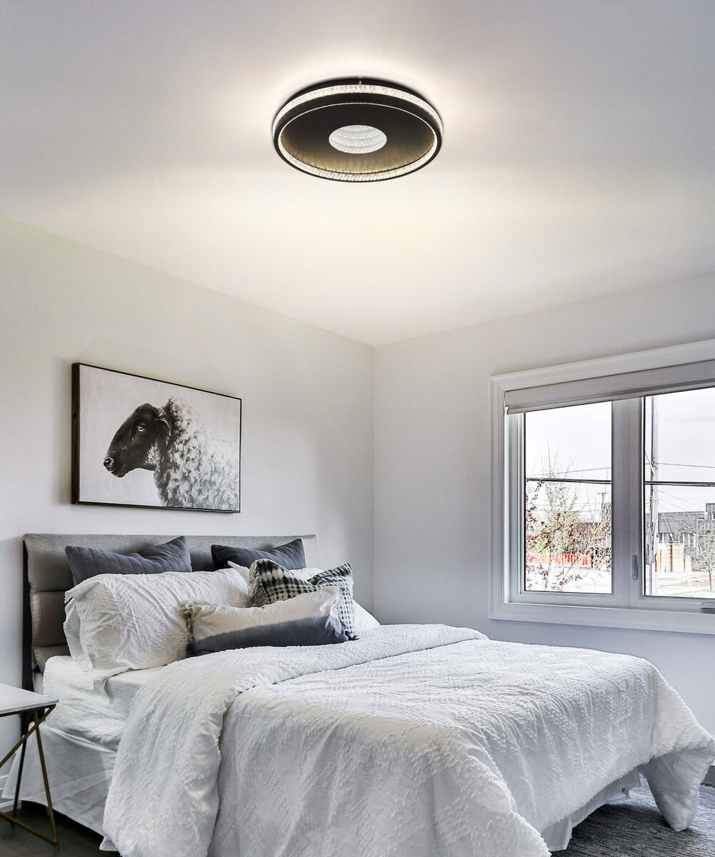 METAL BLACK MAT plafonska lampa kombinuje moderan dizajn sa impresivnom tehnologijom. Metalno kućište u mat crnoj boji daje lampi elegantan i bezvremenski izgled. Sjenilo napravljeno od prozirnih plastičnih kristala, zajedno sa plastikom u ogledalu, stvara fascinantan 3D efekat tunela koji stvara jedinstven svjetlosni efekat. Lampa se može lako kontrolisati pomoću priloženog daljinskog upravljača: može se zatamniti i nudi mogućnost fiksiranja boja kao i memorijsku funkciju za željenu postavku. CCT od 2700K do 6500K vam omogućava da podesite temperaturu svjetlosti po želji – od toplog do hladnog dnevnog svjetla. Zahvaljujući savremenoj LED tehnologiji, svetiljka nudi energetski efikasno osvetljenje i idealna je za širok spektar koncepata prostorija koji zadovoljavaju i estetske i funkcionalne zahteve.