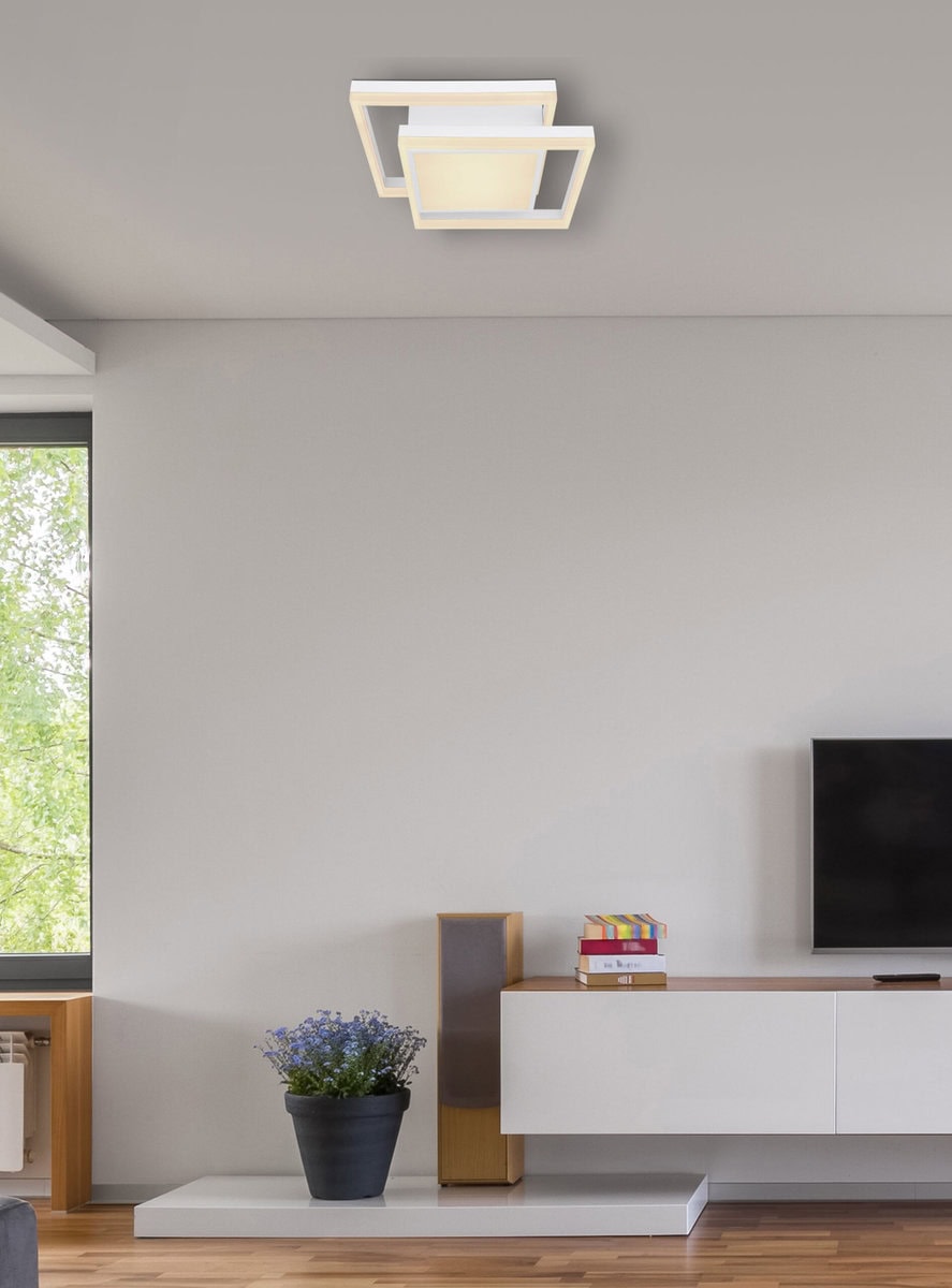 Sa ovom modernom LED plafonskom lampom iz serije Squares, možete unijeti high-tech u svoja četiri zida. Opremljen memorijskom funkcijom, izmjenjivačem boja i daljinskim upravljačem, nijedna želja ne ostaje neispunjena. Vrhunac je, međutim, funkcija Smart Home, svjetiljka je kompatibilna sa Smart Home i Alexa i može se upravljati glasovnim unosom. Nadalje, svjetlosni objekt ima LED ploču od 50 vati sa vijekom trajanja od 20.000 sati. Ovom Smartlight lampom se lako može upravljati pomoću aplikacije Tuya Smart (Android TM/IOS). Upravljanje glasom je jednostavno uz Amazon Echo Tm i Google Home.