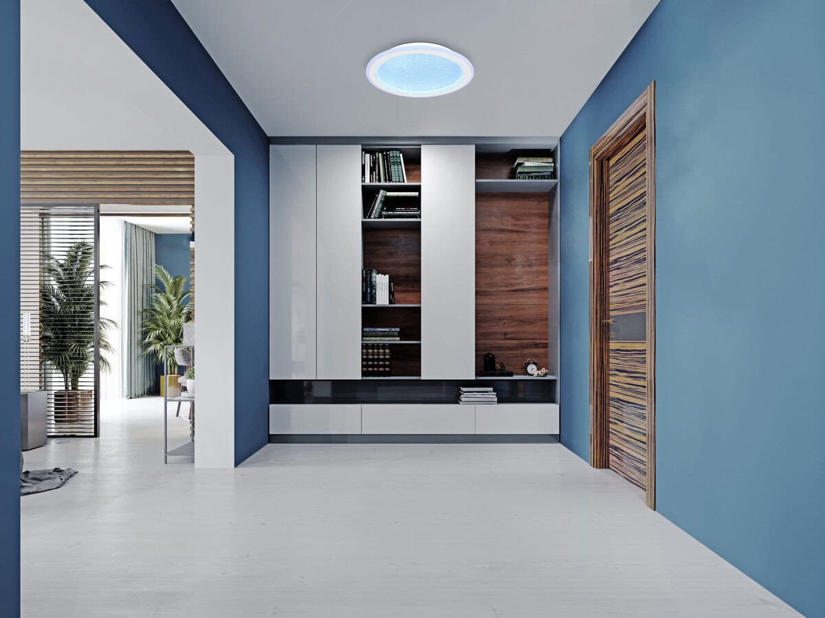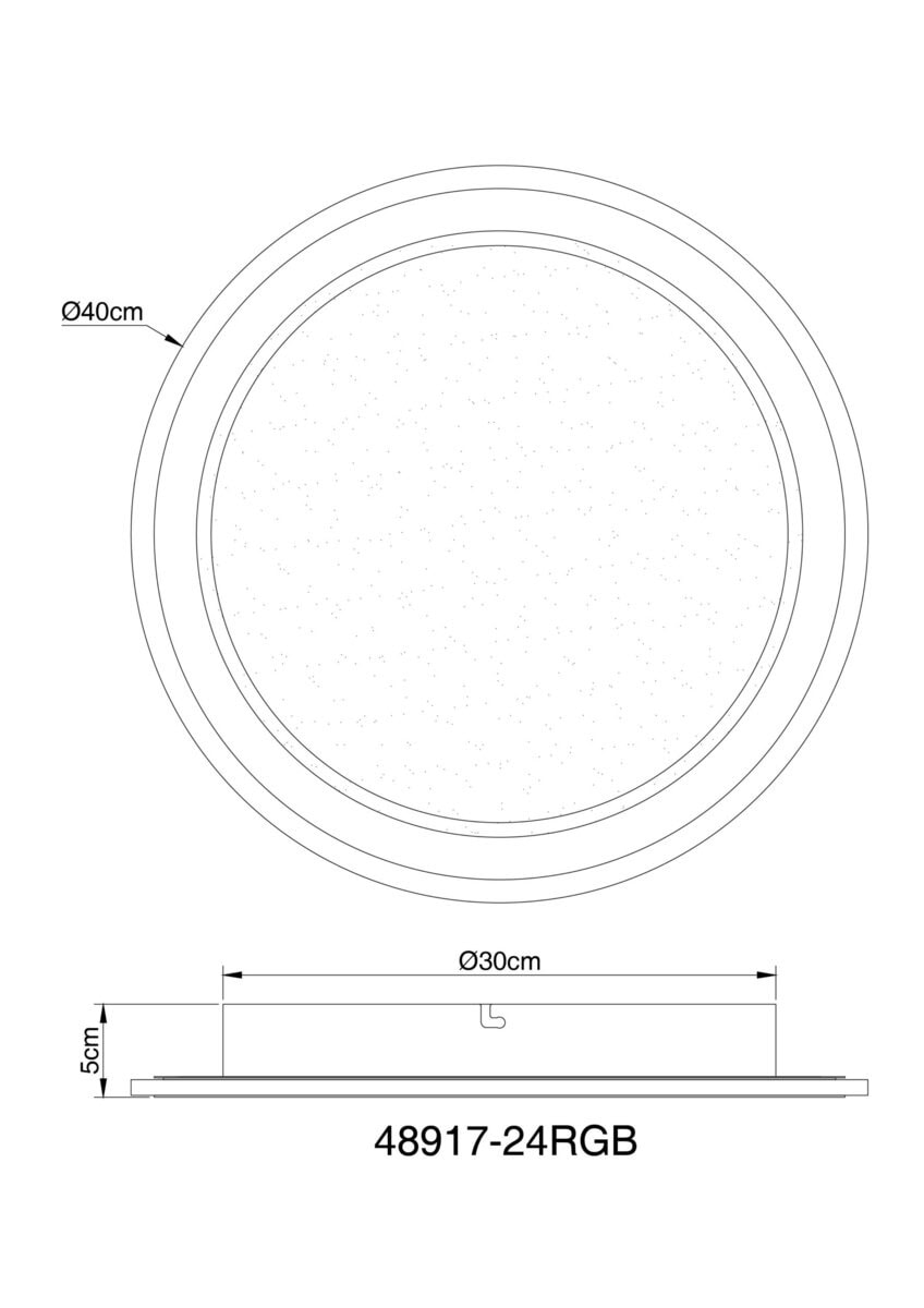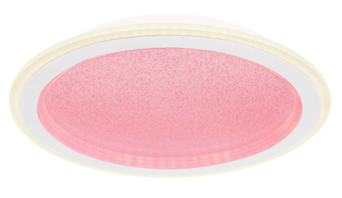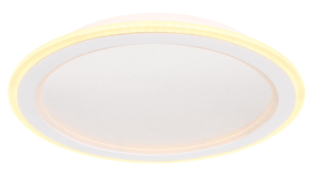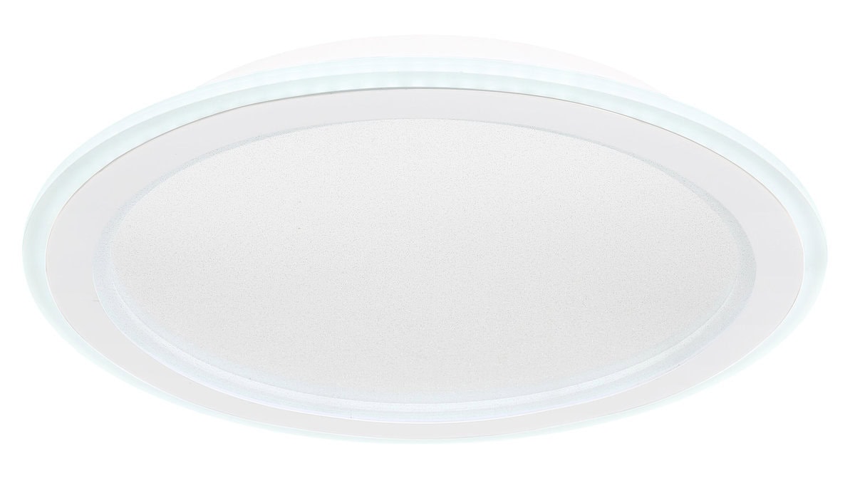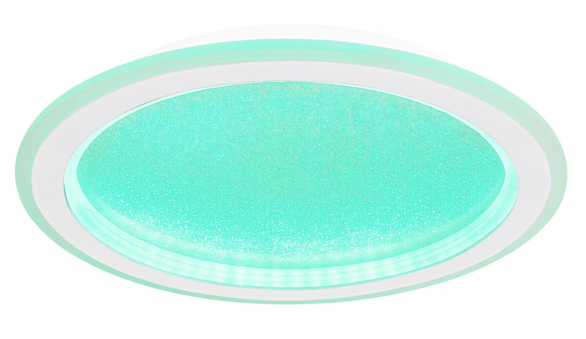 Ova sjajna plafonska lampa impresionira modernim dizajnom i funkcijama. Okrugla stropna lampa od bijelog metala (Ø 40 cm) ima toplo bijelo svjetlo od 27000 Kelvina do 6000 Kelvina hladno bijelo svjetlo i može se prigušiti i fiksirati u ovim vrijednostima. Koristeći priloženi daljinski upravljač, možete koristiti crveni, zeleni i plavi način rada, kao i sačuvati svjetlosne vrijednosti nakon isključivanja lampe.