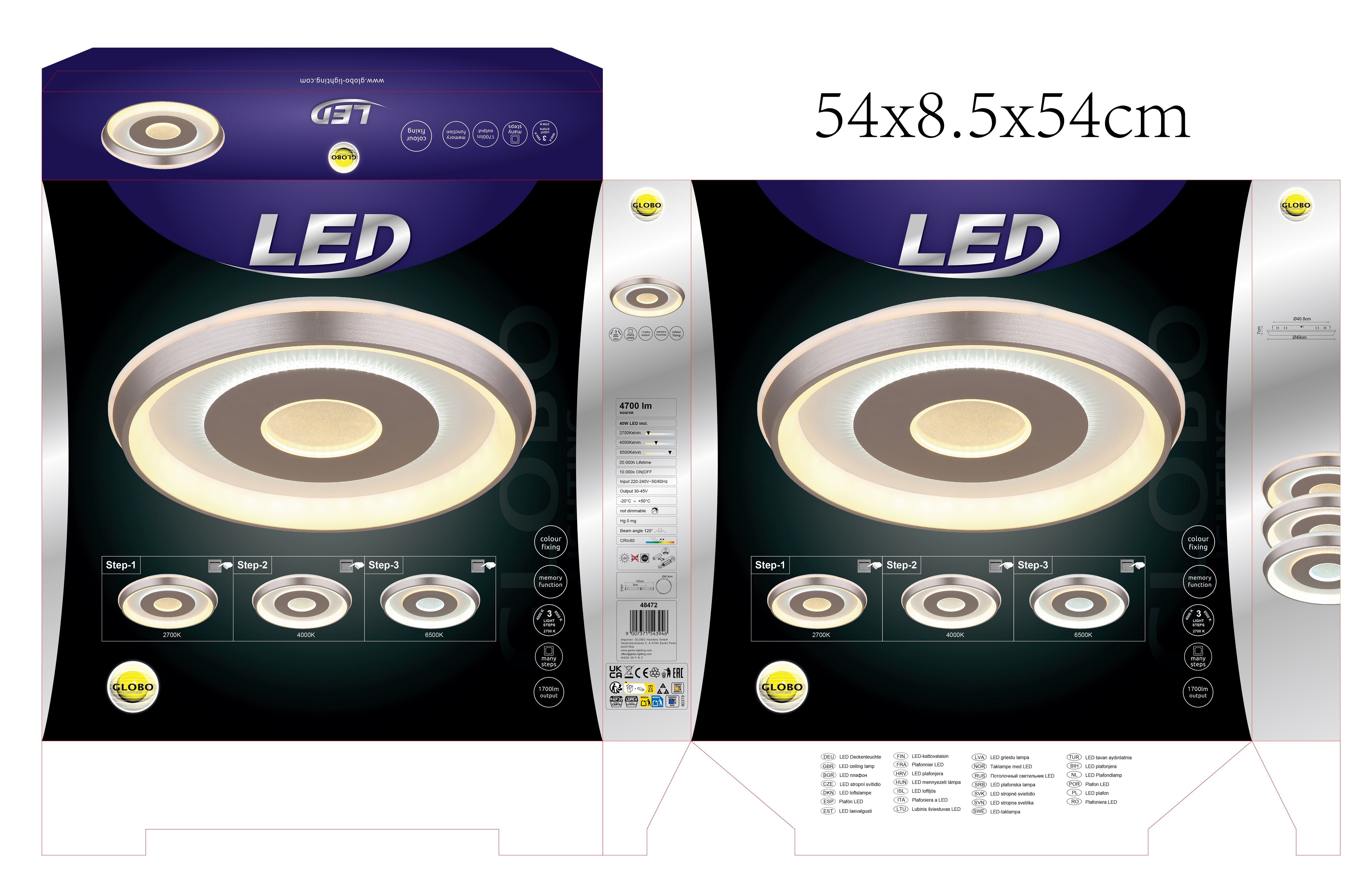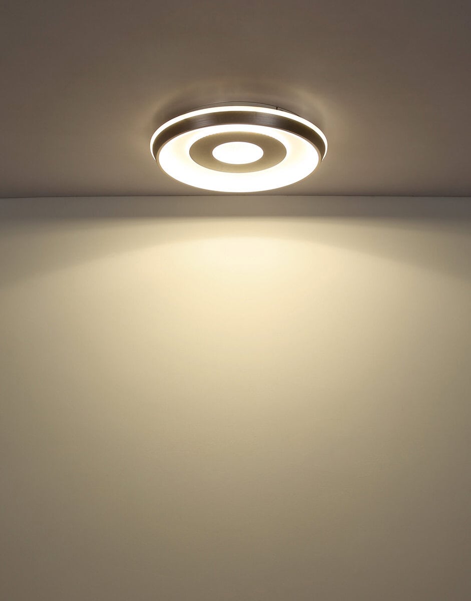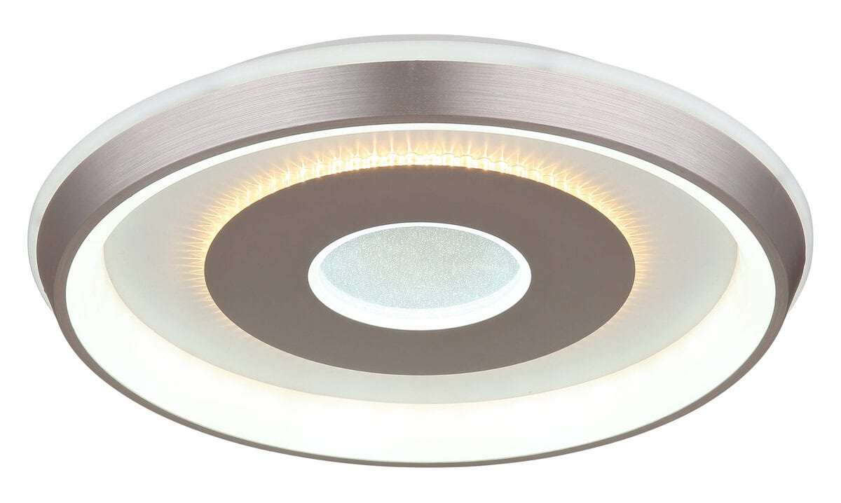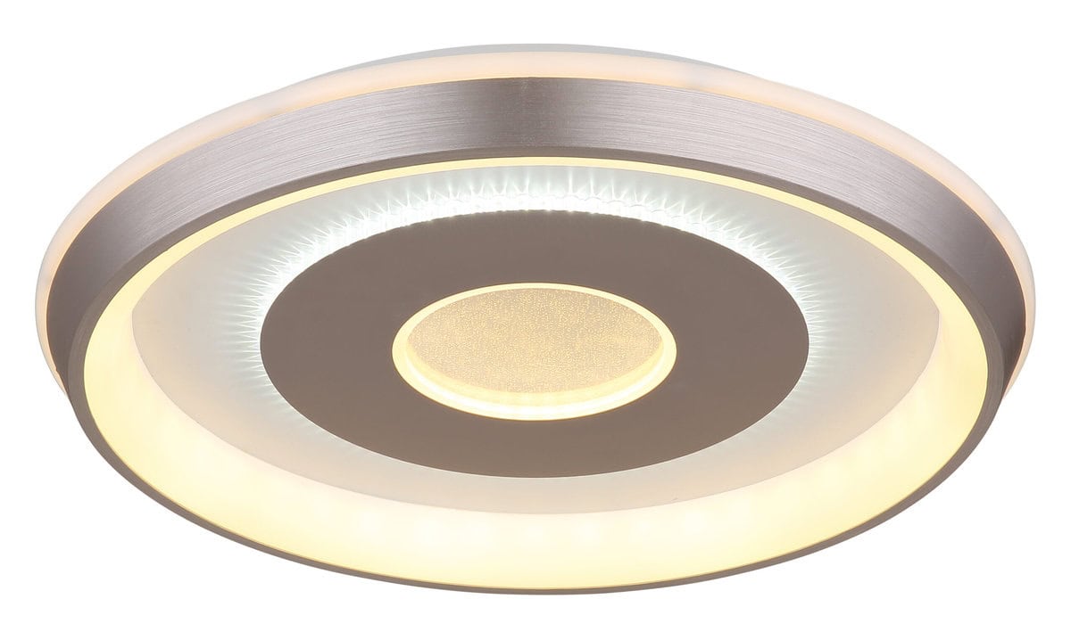 WILLIAMSON plafonska lampa – elegantna rasveta za svaki dom Plafonska lampa WILLIAMSON kombinuje moderan dizajn sa elegantnim akcentima. Bijelo metalno tijelo i sjenilo od mat plastike boje šampanjca osiguravaju ravnomjernu i ugodnu distribuciju svjetlosti. Opalno bijeli plastični materijal i zrcalni plastični element daju svjetiljci luksuzan izgled. U središtu lampe je ogledalo sa kristalnim pijeskom, koje daje dodatni dodir elegancije. Sa prečnikom od 490 mm, ovo svetlo je idealno za srednje i velike prostorije i nudi jačinu lumena od 2500 lumena. Zahvaljujući CCT funkciji, možete podesiti temperaturu boje od 2700K do 6500K po potrebi kako biste uvijek stvorili željenu atmosferu. Funkcija memorije čuva željena podešavanja. Uključujući LED tehnologiju, WILLIAMSON plafonska lampa pruža elegantno i efikasno osvetljenje.
