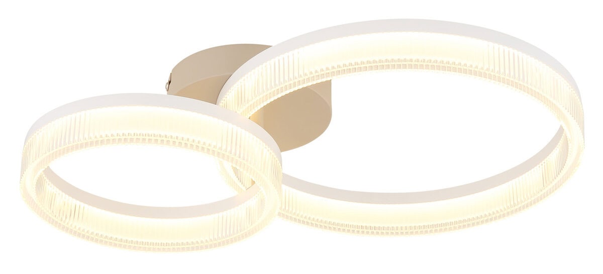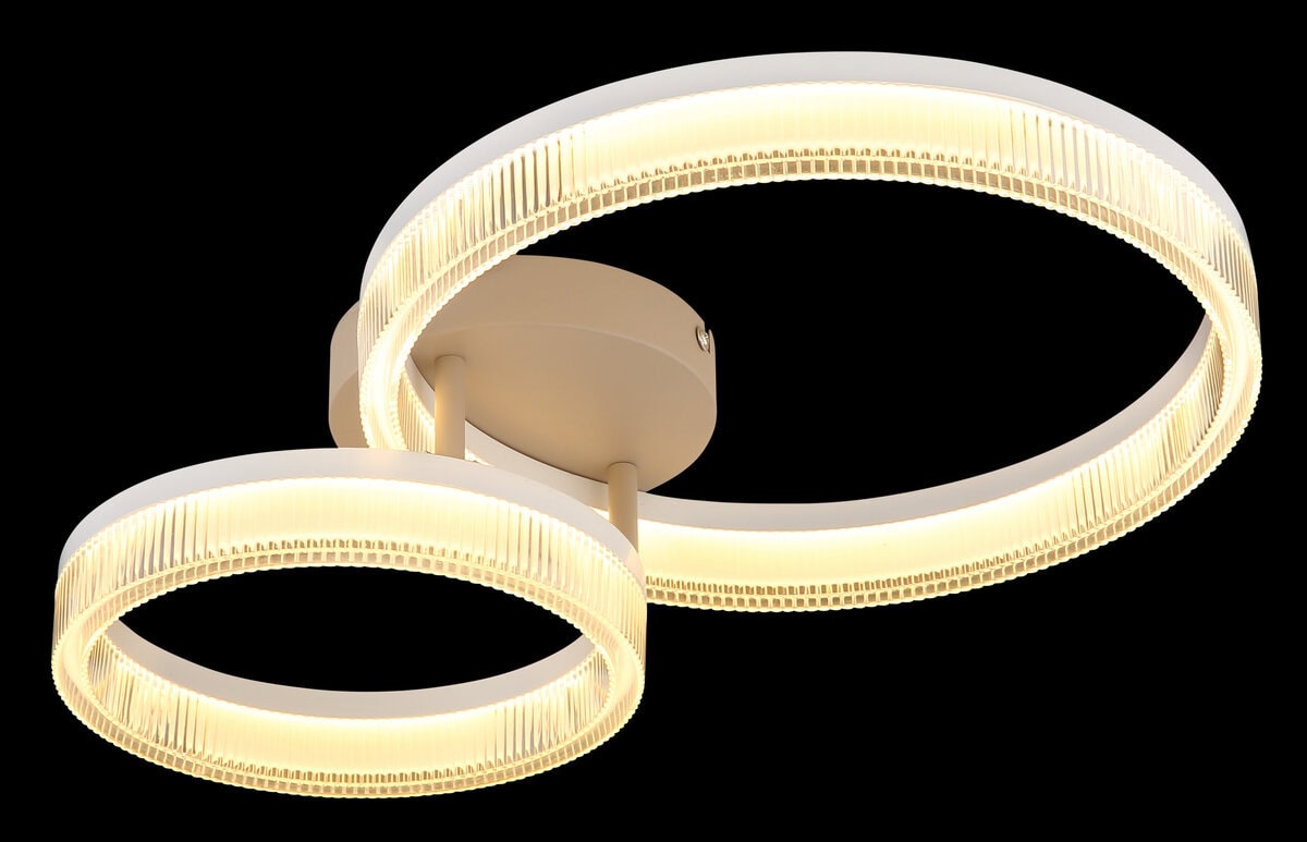 Pravougaona plafonska lampa ZARA impresionira svojim modernim, elegantnim dizajnom sa dva harmonično isprepletena prstena. Sa dužinom od 500 mm i širinom od 330 mm, idealan je za elegantno osvjetljavanje srednjih i većih prostorija. Kućište je napravljeno od mat boje pijeska i bijelog metala, dajući svjetlu topao, ali suvremen izgled. Sjenilo, napravljeno od bijele i prozirne plastike, osigurava ravnomjernu raspodjelu svjetlosti bez odsjaja koja ugodno osvjetljava prostoriju. Integrirana LED tehnologija (uključena) emituje toplu bijelu svjetlost na 3000 K, stvarajući ugodnu atmosferu. ZARA plafonska lampa kombinuje funkcionalnost sa estetskom privlačnošću i savršeno se uklapa u moderne, skandinavske ili minimalističke stilove enterijera zahvaljujući svom čistom dizajnu. Pravi vrhunac koji obogaćuje sobe elegantnim svjetlosnim akcentom.