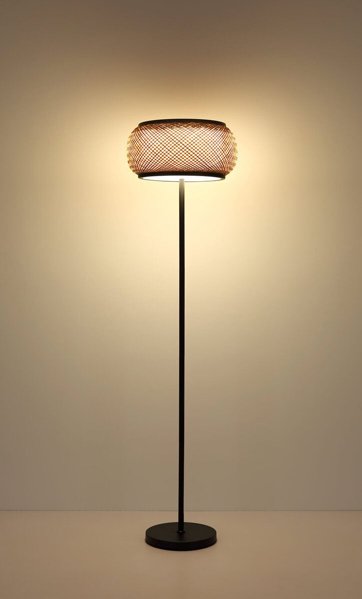 Podna lampa BAMBORA spaja autentični vintage šarm sa modernom tehnologijom rasvjete, postajući stilski žarište u svakom životnom prostoru. Njegova okrugla, lukovičasta nijansa napravljena od tkanja bambusa prirodne boje daje toplu, zemljanu estetiku. Bijelo tekstilno unutrašnje sjenilo osigurava meko osvjetljenje bez odsjaja. Tanka, ravna mat-crna metalna drška pruža elegantan kontrast organskom izgledu bambusa. Sa prečnikom od 380 mm i svetlosnom snagom od 1560 lumena, BAMBORA pruža prijatno osvetljenje—idealno za uglove za čitanje, dnevne sobe ili spavaće sobe. Integrirana LED tehnologija je dugotrajna i energetski efikasna. Zahvaljujući CCT funkciji, temperatura boje može se glatko podesiti između 3000K (topla bela) i 6000K (dnevna bela). Nožni prekidač sa stepenastom kontrolom u kablu omogućava praktičan odabir načina rada. Popravljive boje i memorijska funkcija upotpunjuju udobnost.