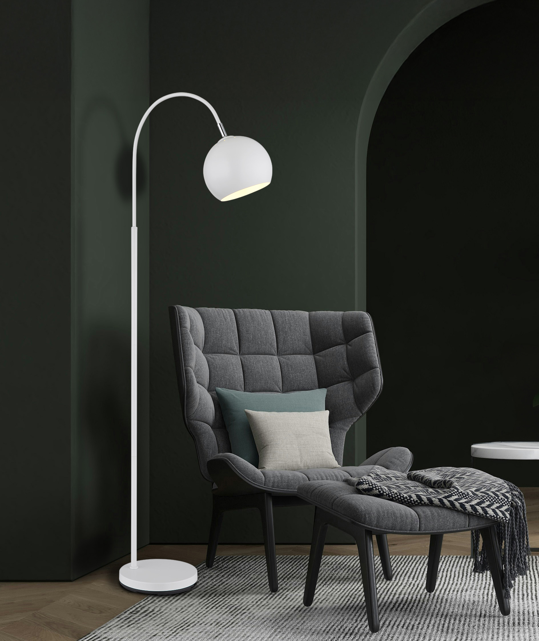 BENNO podna lampa u bijeloj boji kombinira moderan dizajn s praktičnim funkcijama. Njegova zakrivljena cijev i bijelo mat metalno tijelo pružaju suvremeni izgled koji se uklapa u svaki interijer. Nijansa od bijelog, mat metala upotpunjuje cjelokupnu sliku i osigurava ravnomjernu distribuciju svjetlosti. Sa nožnim prekidačem u kablu, rukovanje je posebno pogodno. Sa visinom od 460 mm i širinom od 250 mm, ova lampa je idealna za svaku prostoriju, bilo da se radi o dnevnoj sobi, spavaćoj sobi ili kancelariji. E27 utičnica vam omogućava da odaberete idealan izvor svjetlosti kako biste stvorili atmosferu koju želite. BENNO podna lampa je moderan dodatak svakoj prostoriji i pruža ugodan ambijent osvjetljenja.