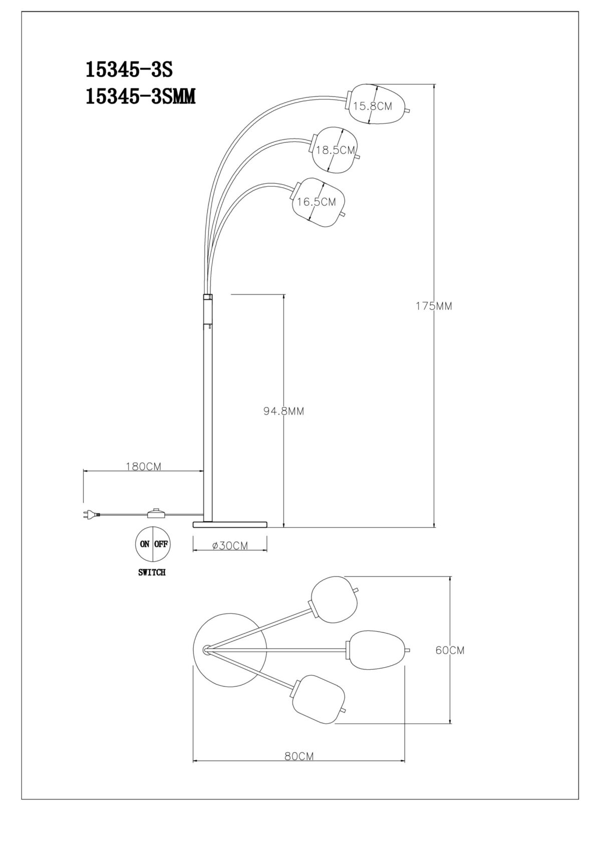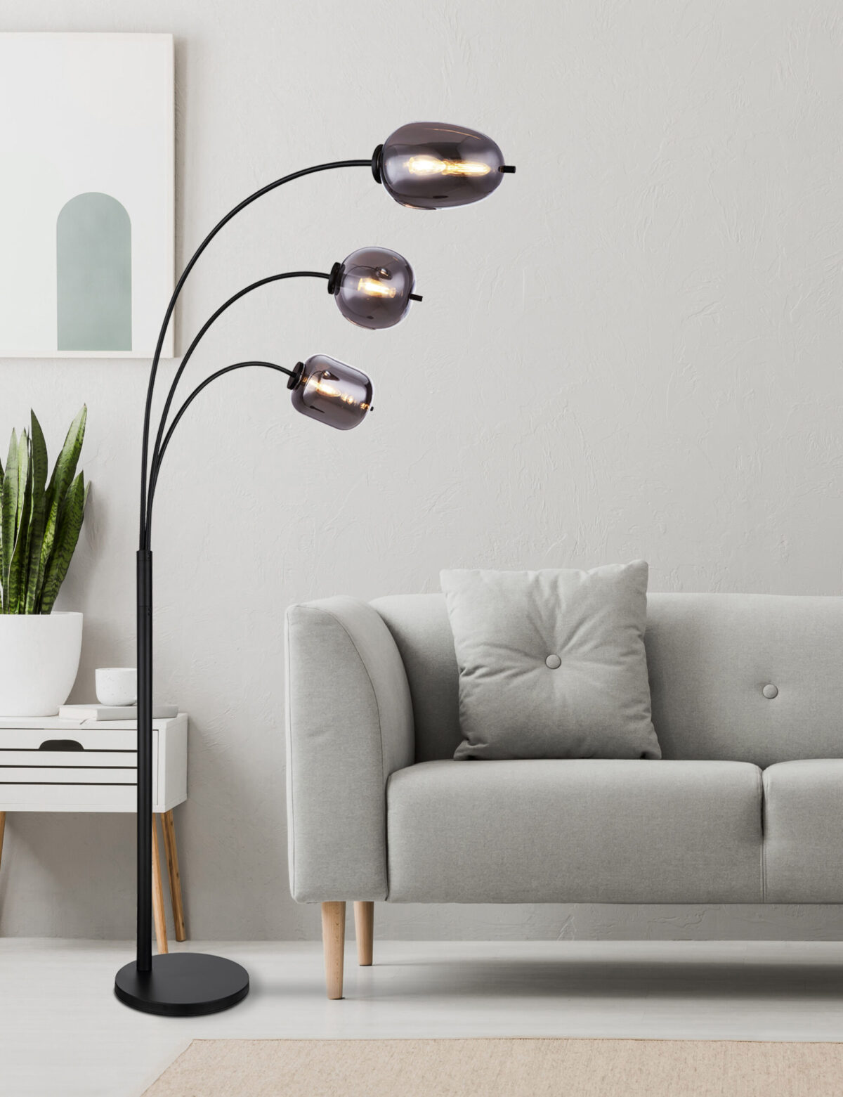 Ova sjajna podna lampa iz serije Blacky inspirira svojim prekrasnim dizajnom. Iz baze viri crna mat metalna šipka iz koje vire još tri metalne šipke, svaka sa E14 nastavkom na vrhu. Na utičnicama E14 nalazi se zadimljeno staklo u različitim oblicima i omogućava vam da slobodno birate do maksimalne snage od 40 vati.