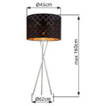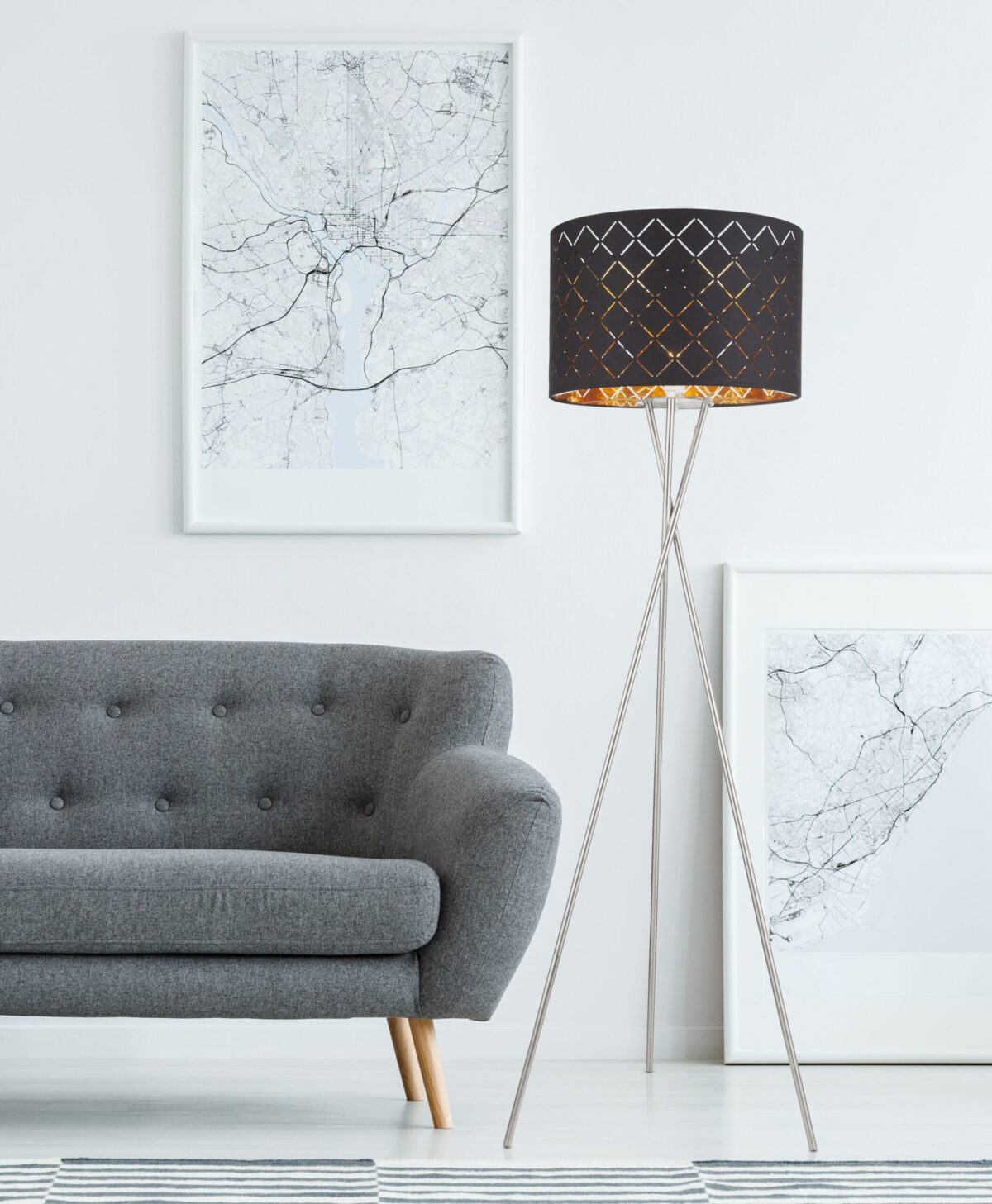 Uz ovu trokraku, izuzetno modernu podnu lampu u crnoj boji, iz Clarke serije, postavljeni su svijetli akcenti. Polovan e.B. u dnevnom boravku ili kancelariji, ovaj model sa svojim ukrasnim perforacijama i zlatnom bojom iznutra može doprinijeti ugodnom okruženju. Ovom lampom se upravlja pomoću prekidača za uključivanje i isključivanje i ima grlo E27, što vam omogućava da slobodno birate svoju sijalicu. Preporučujemo LED lampe, zbog njihove uštede energije i dugovečnosti.