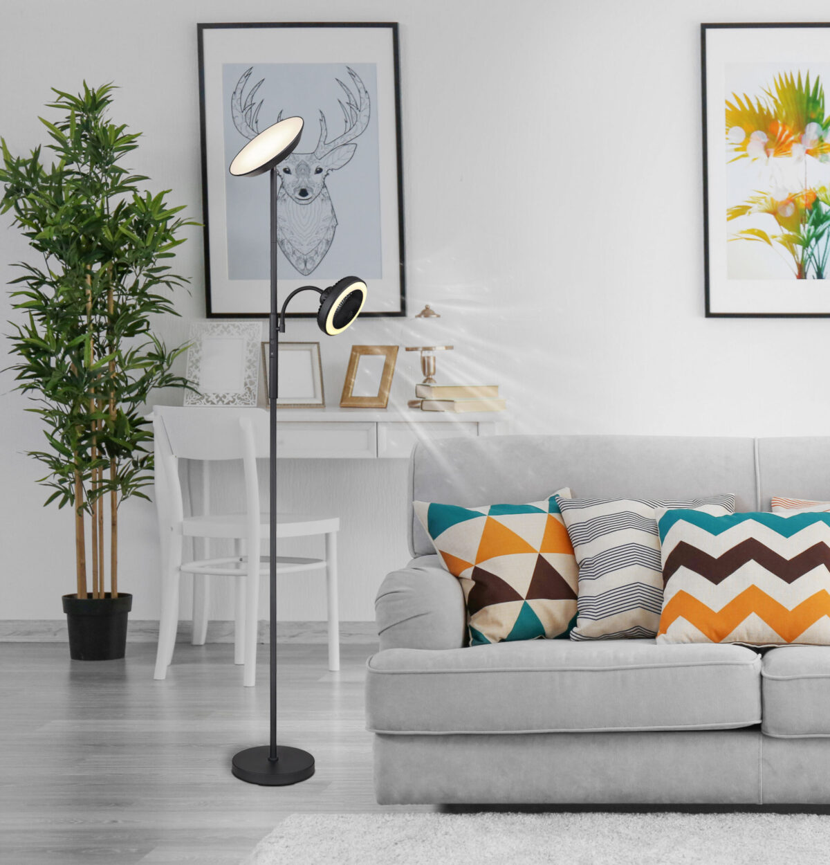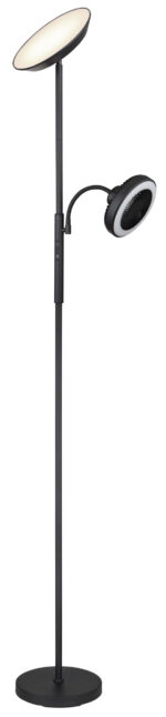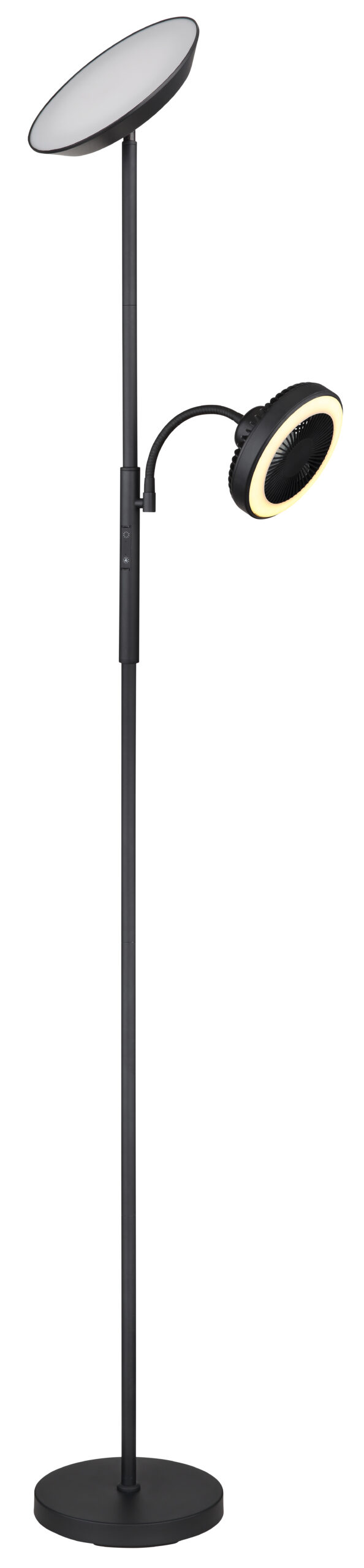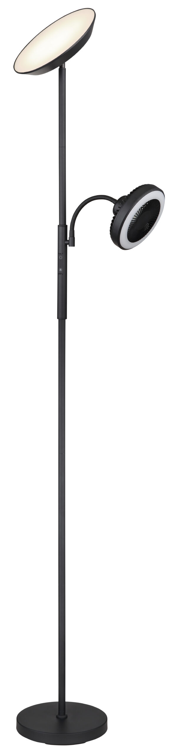 DAVYD okrugla svjetiljka je svestran i praktičan rasvjetni element. Telo je izrađeno od mat crnog metala i hroma, dajući lampi moderan i elegantan izgled. Sjenilo je izrađeno od mat, crne plastike i opal plastike. Posebno je praktičan pokretni reflektor koji omogućava individualno podešavanje svjetla. Osim toga, ova lampa ima integrirani ventilator koji osigurava ugodnu cirkulaciju zraka. Sa prečnikom od 337 mm i širinom od 250 mm, DAVYD je savršen za male i srednje prostorije. Svjetlo se može prigušiti i ima beskonačni dimer na dodir pomoću kojeg se svjetlina može lako i praktično podesiti. Željena boja se takođe može popraviti. Sa jačinom lumena od 850 i CCT od 2700K do 6500K, DAVYD pruža individualno podesivo osvjetljenje. Uz DAVYD uplight, ne dobijate samo visokokvalitetno osvjetljenje, već i praktičnu kombinaciju izvora svjetlosti i ventilatora.