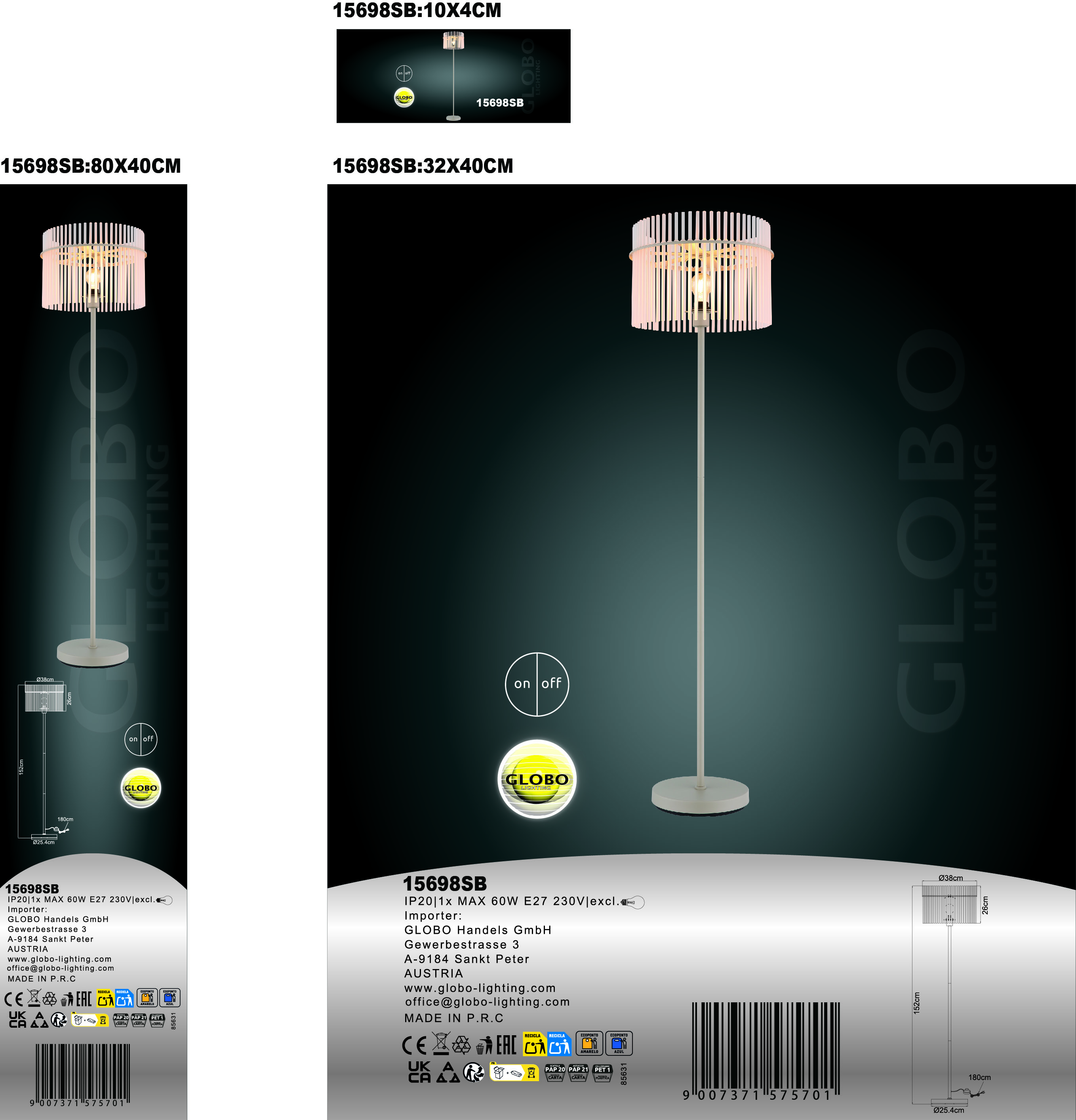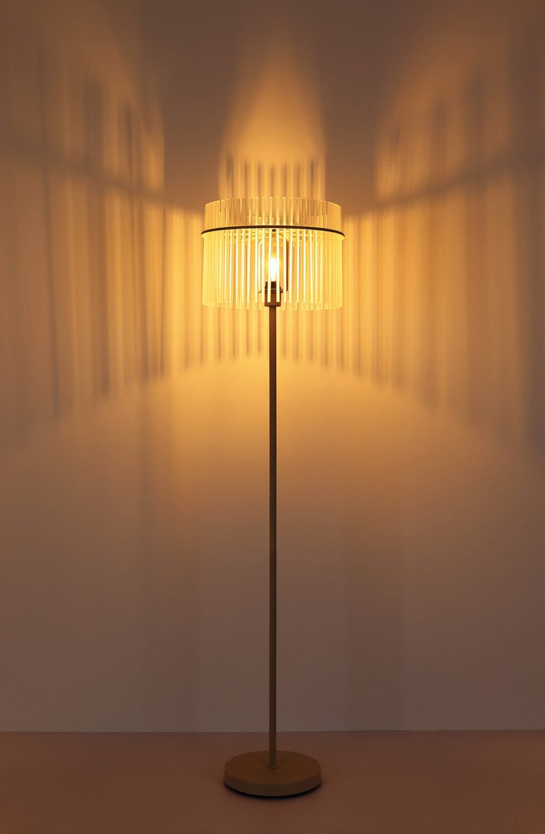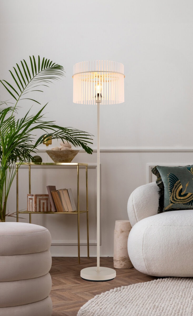 Podna lampa GORLEY kombinuje elegantne oblike sa visokokvalitetnim materijalima. Sa svojim okruglim dizajnom i ravnom cijevi od mat bež obojenog metala, djeluje moderno i bezvremensko. Okrugli sjenilo od matiranog stakla daje lampi nježan svjetlosni efekat i stvara ugodnu atmosferu — idealno za dnevne sobe ili kutke za čitanje. Abažur ima prečnik od 380 mm, pružajući delikatnu, ali čvrstu estetiku. Pogodno, nožni prekidač u kablu omogućava jednostavnu kontrolu uključivanja/isključivanja. Lampa koristi grlo E27, a jačina lumena ovisi o korištenoj sijalici (nije uključena). Dostupne su i odgovarajuće viseće lampe u istom dizajnu za stvaranje skladnog koncepta rasvjete u cijelom domu.