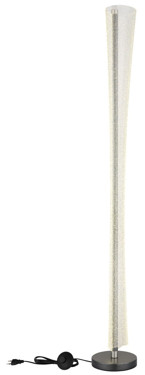 Podna lampa MALINDA kombinuje moderan dizajn sa fascinantnim detaljima. Izduženo, okruglo sjenilo od prozirnog akrila sa zatvorenim mjehurićima zraka stvara jedinstven, živahan svjetlosni efekat. Tijelo, izrađeno od metala u plemenitoj završnoj obradi antracit mat i nikl mat, daje svjetiljci bezvremenski i visokokvalitetan izgled. Sa prečnikom od 200 mm i izdašnim svetlosnim učinkom od 2160 lumena, MALINDA obezbeđuje optimalno osvetljenje za dnevne ili radne prostore. Integrisana LED-ica omogućava beskonačno podešavanje temperature boje od 2700 K do 6000 K, fleksibilno prilagođavajući se vašim potrebama. Podna lampa ima praktičan stepenasti prekidač kao i nožni prekidač na kablu za praktičan rad. Zahvaljujući memorijskoj funkciji i bojama koje se mogu popraviti, vaša željena svjetlosna raspoloženja su uvijek sačuvana. MALINDA je savršena kombinacija dizajna, tehnologije i funkcionalnosti za moderne prostore.