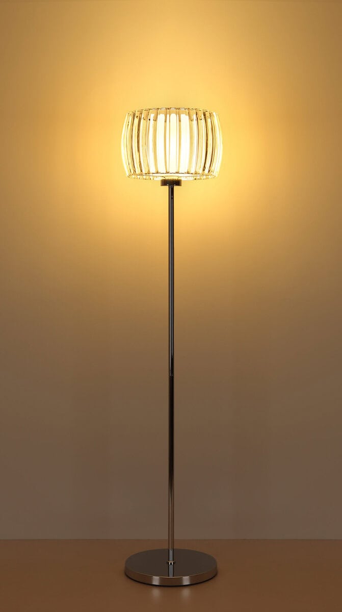 Okrugla podna lampa MARIBEL impresionira svojim modernim i elegantnim dizajnom. Kromirani metalni okvir daje svjetiljci visokokvalitetan, sjajni izgled koji dodaje stilski naglasak svakoj prostoriji. Okrugla nijansa se sastoji od zakrivljenih, prozirnih akrilnih traka izvana, koje umjetnički uokviruju unutrašnje opalno staklo i stvaraju ugodno, difuzno svjetlo. Sa prečnikom od 325 mm, podna lampa MARIBEL je kompaktna i svestrana—savršena za dnevne sobe, radne sobe ili udobne kutke za čitanje. Nožni prekidač u kablu omogućava praktično upravljanje lampom. Kombinacija metala, akrila i opalnog stakla stvara skladnu distribuciju svjetlosti i bezvremensku estetiku. MARIBEL podna lampa je dizajnirana za jednu E27 sijalicu (sijalica nije uključena), što vam omogućava da pojedinačno odaberete izvor svjetlosti. Funkcionalnost i dizajn spajaju se ovdje kako bi stvorili atraktivnu rasvjetu.