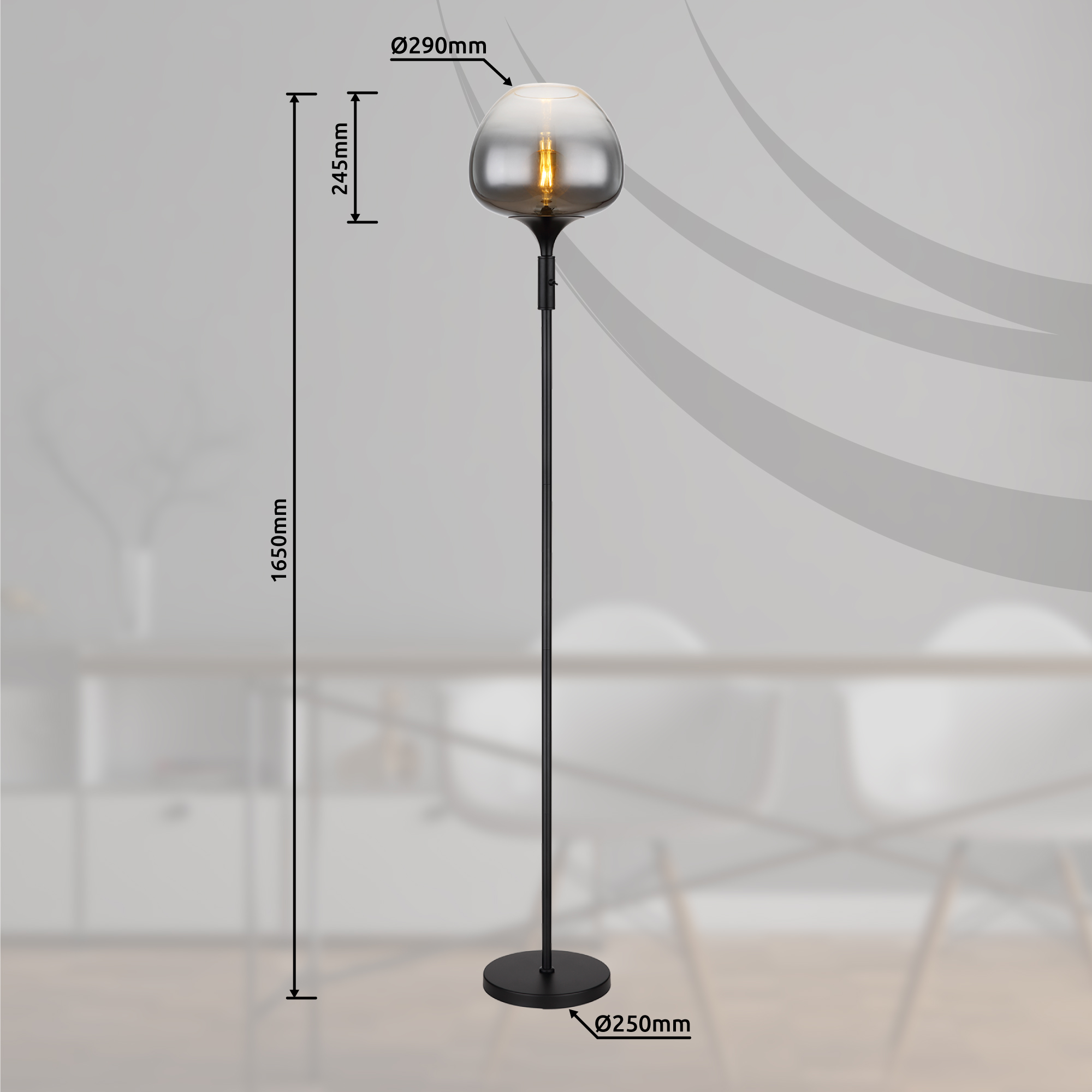 Podna lampa MAXY kombinuje tradicionalni dizajn sa modernom interpretacijom i postaje privlačna u svakoj prostoriji. Sa svojim okruglim oblikom i ravnom cijevi, izgleda elegantno i bezvremensko. Tijelo MAXY podne lampe izrađeno je od mat crnog metala, što joj daje plemenit i kvalitetan izgled. Sjenilo je izrađeno od stakla u boji dima, što osigurava ugodnu distribuciju svjetlosti. Podna lampa MAXY opremljena je praktičnim prekidačem na klancu, tako da lako možete uključiti i isključiti svjetlo. Sa prečnikom od 290 mm, svetiljka se harmonično uklapa u vaš životni ambijent. Doživite atmosfersko osvjetljenje uz MAXY podnu lampu i stvorite ugodnu atmosferu u svom domu. Bilo kao lampa za čitanje u dnevnoj sobi ili kao akcentna rasvjeta u vašoj spavaćoj sobi – MAXY podna lampa je svestrana i osigurava skladnu igru ​​svjetla.