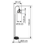 Ova moderna podna lampa inspiriše odličnim dizajnom. Iz okruglog postolja viri zakrivljena metalna šipka dužine 1,5 m, na kojoj se nalazi utičnica E27 sa staklenim sjenilom u obliku dima (Ø 18 cm). E27 utičnica vam omogućava da sami odredite boju i svjetlinu do maksimalne snage od 40 vati. Zbog dugovečnosti i uštede energije preporučujemo LED sijalice.