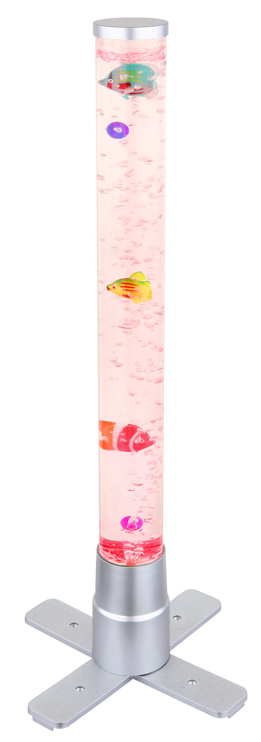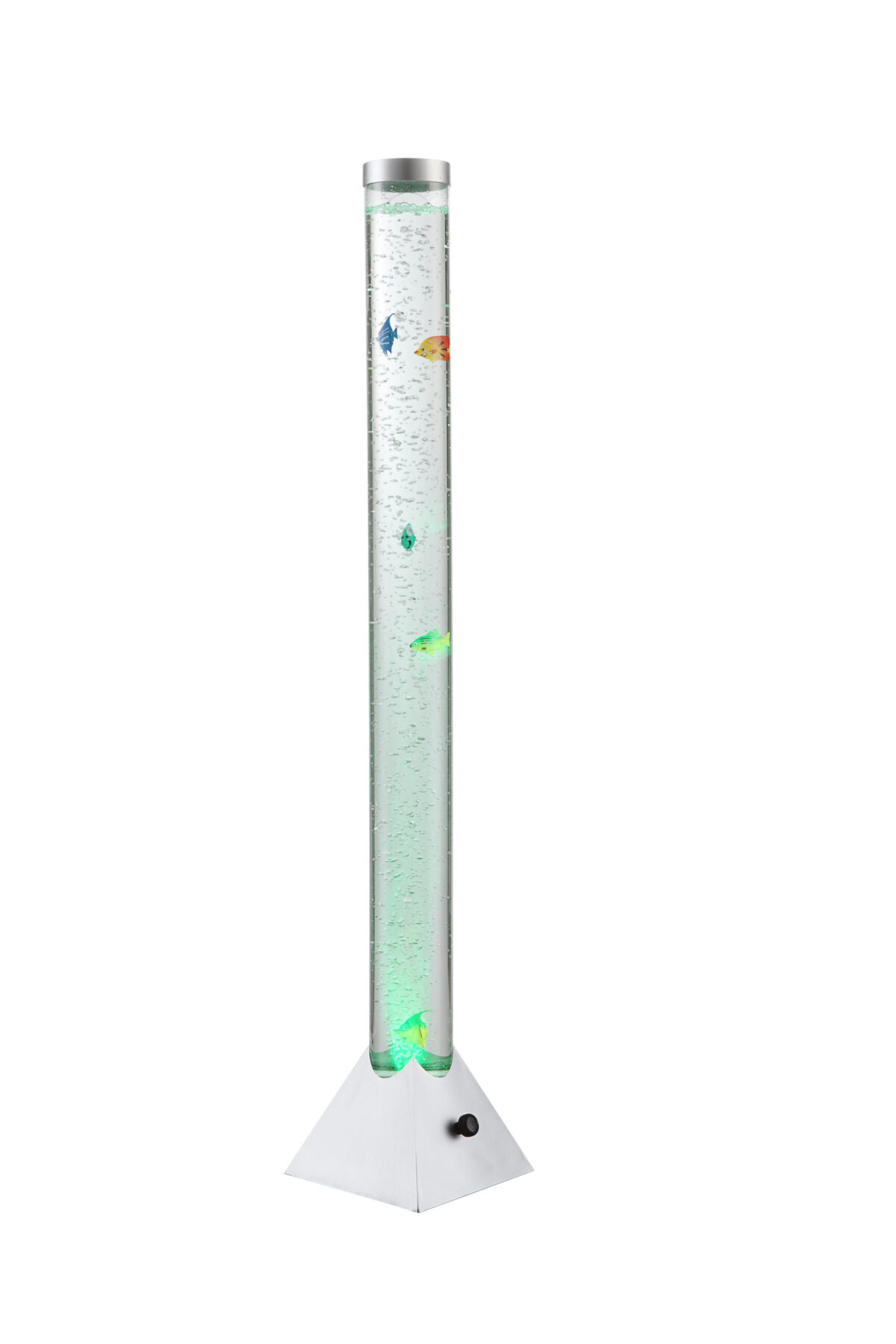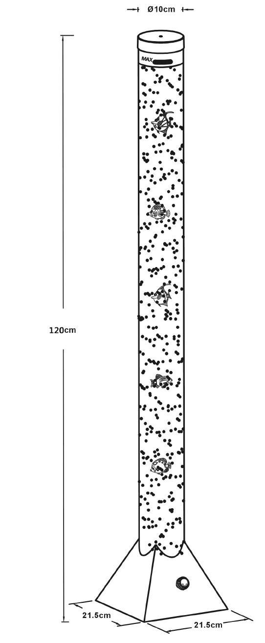 Ova prvoklasna podna lampa iz serije Mendoza odlikuje se svojim izvanrednim izgledom. Kvadratna osnova je u srebrno-metalnoj nijansi, a cijev od prozirne plastike na njoj je punjena sa 5 ribica i ima promjer 10 cm. Ovaj odličan model je također opremljen sa RGB promjenom boje i 12 šarenih LED sijalica. Zahvaljujući prekidaču za uključivanje-isključivanje, rukovanje je posebno jednostavno. Dodatna prednost je visoka energetska efikasnost ove lampe.