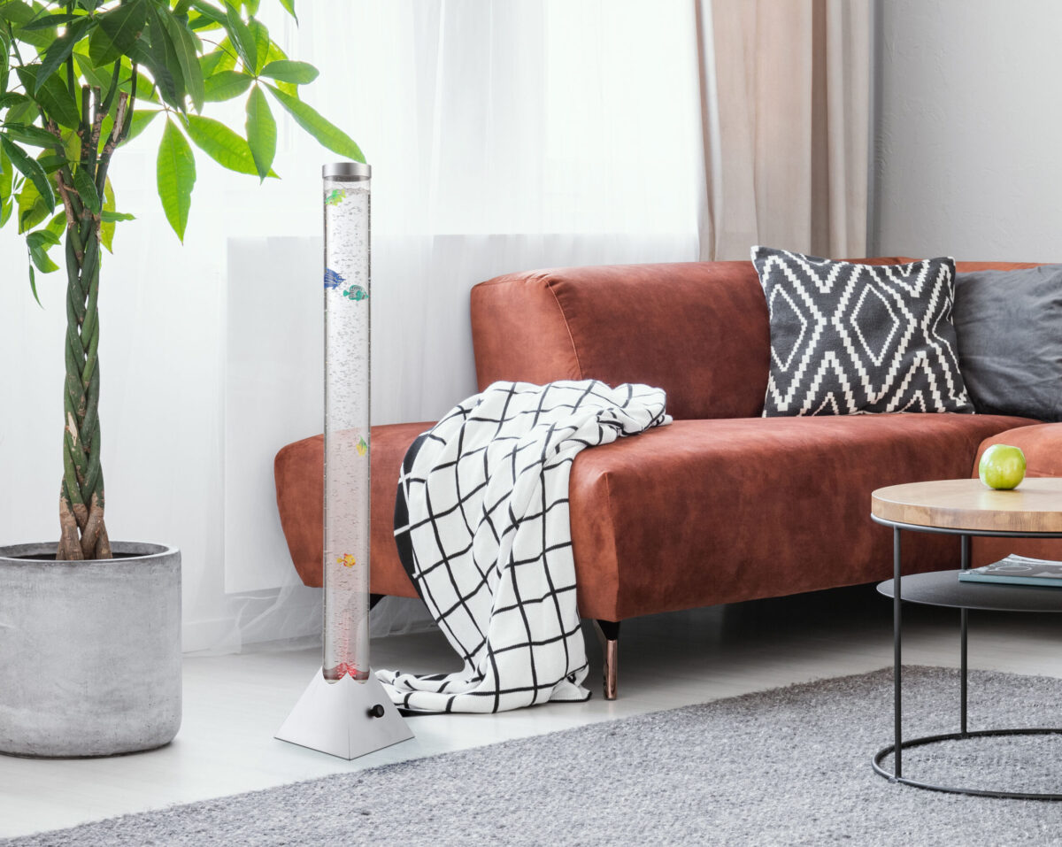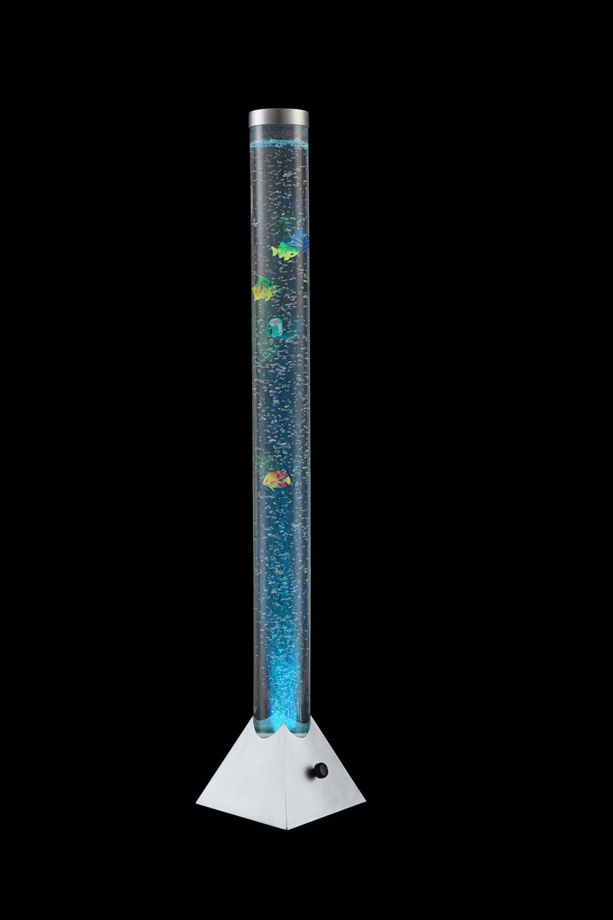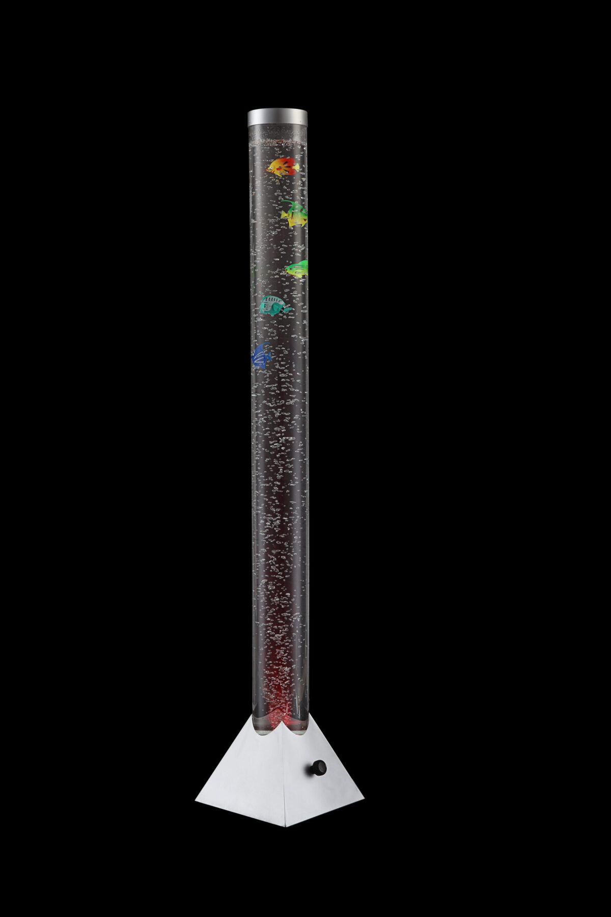 Ova prvoklasna podna lampa iz serije Mendoza odlikuje se svojim izvanrednim izgledom. Kvadratna osnova je u srebrno-metalnoj nijansi, a cijev od prozirne plastike na njoj je punjena sa 5 ribica i ima promjer 10 cm. Ovaj odličan model je također opremljen sa RGB promjenom boje i 12 šarenih LED sijalica. Zahvaljujući prekidaču za uključivanje-isključivanje, rukovanje je posebno jednostavno. Dodatna prednost je visoka energetska efikasnost ove lampe.