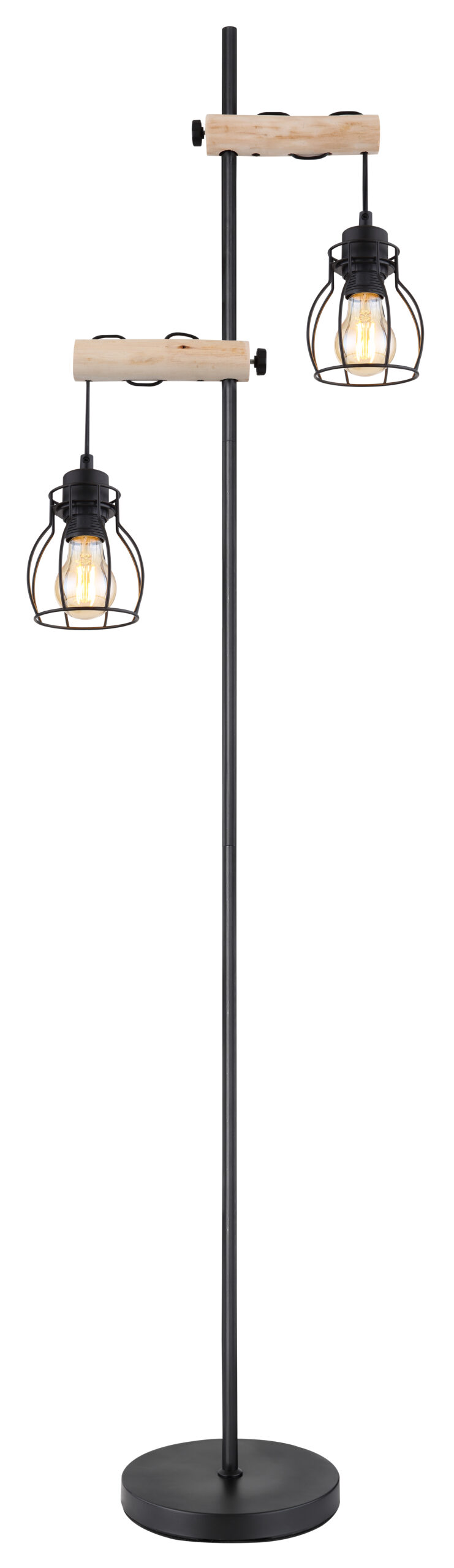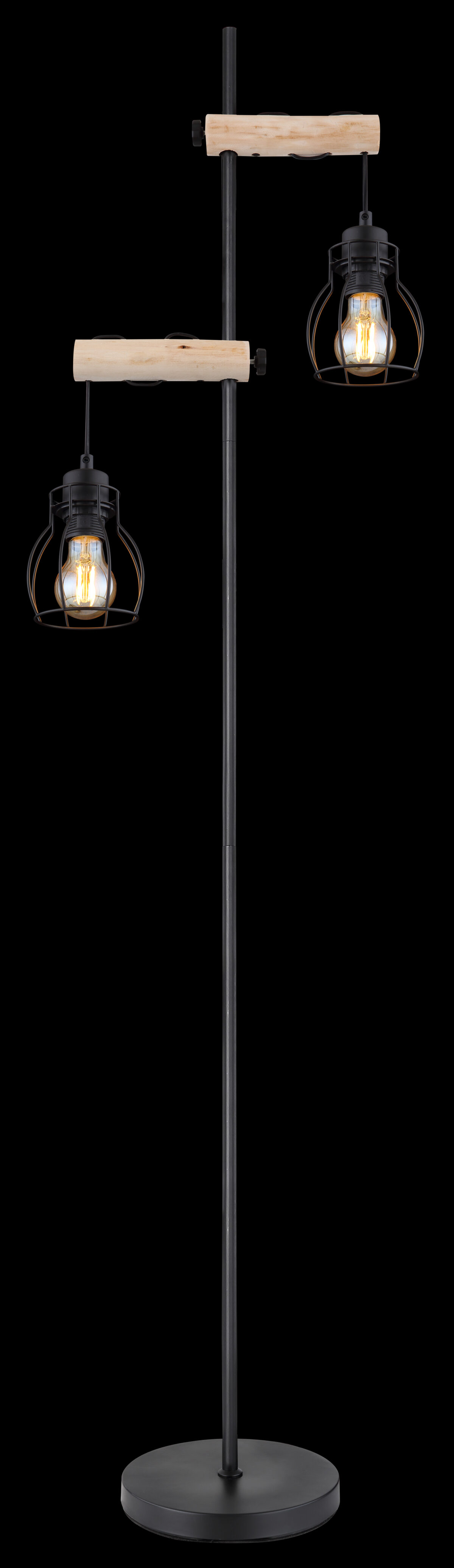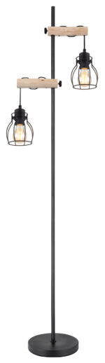 Ova podna lampa iz serije Mina (38,5×23 cm) impresionira svojim rustikalnim dizajnom od mat crnog metala i drveta. Podna lampa od 150 cm sastoji se od okruglog metalnog postolja na koji je pričvršćena metalna šipka. Opremljen je sa dvije drvene šipke, na kojima vise dvije metalne rešetke, koje možete opremiti sa E27 sijalicom po izboru, što vam daje mogućnost da individualno odredite boju svjetla i svjetlinu. Uz više artikala iz serije Mina, možete stilski upotpuniti svoje interijere.