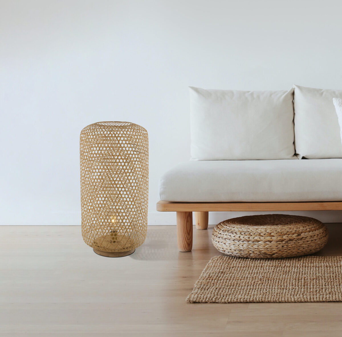 Čista priroda! Sjenilo ove podne svjetiljke sastoji se od bambusove mreže, koja omogućava da svjetlost zrači direktno u okolinu. Vidljiva je i sijalica sa grlom E27. Ovo omogućava alternativno korištenje dekorativnog izvora svjetlosti. Sa LED sijalicom osiguravate još veću održivost. Sa visinom od 77 cm, ova lampa je odličan dodatak za vaš dom.