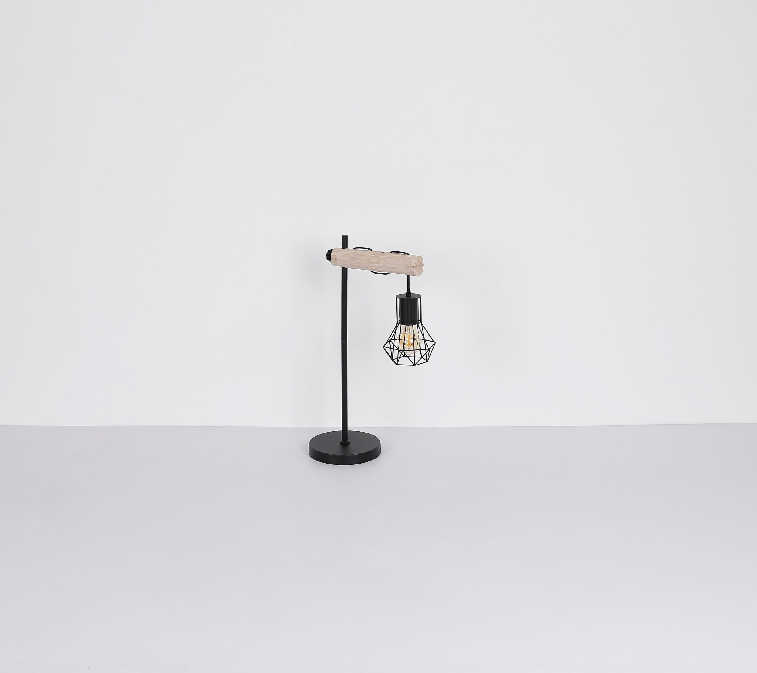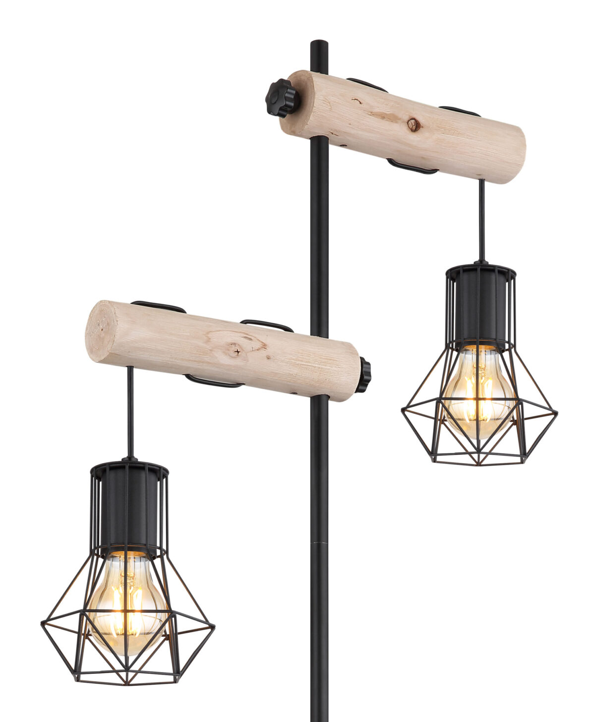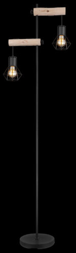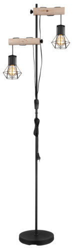 Ova sjajna podna lampa uvjerava materijalima od drveta i metala. Iz okrugle baze viri skoro 1,7 m velika crna metalna šipka na kojoj se nalaze dvije drvene grede podesive po visini, svaka sa E27 nastavkom i udobnim sjenilom od metalne mreže. E27 utičnica vam omogućava da sami odredite boju i svjetlinu do maksimalne snage od 60 vati. Zbog dugovečnosti i uštede energije preporučujemo LED sijalice.