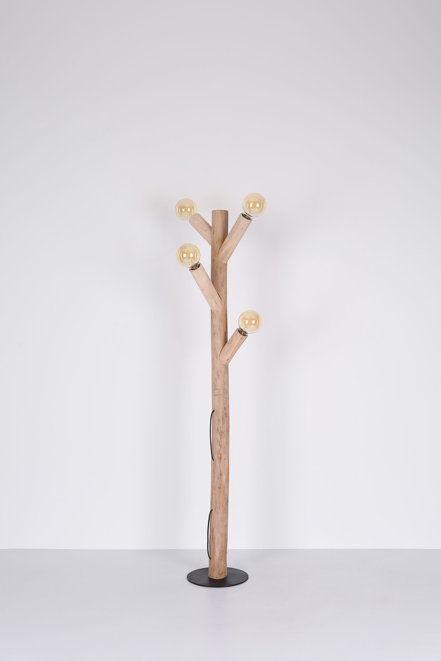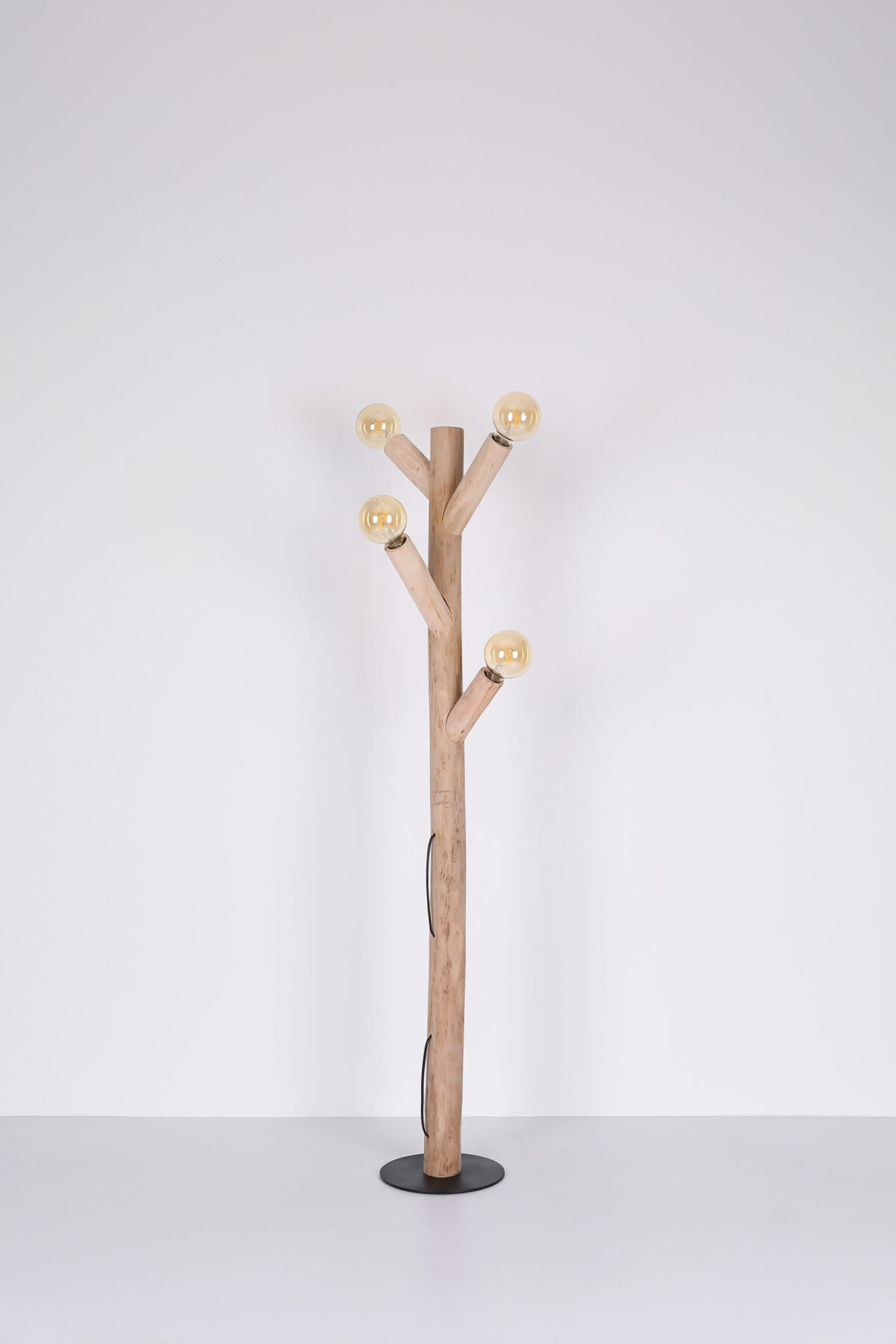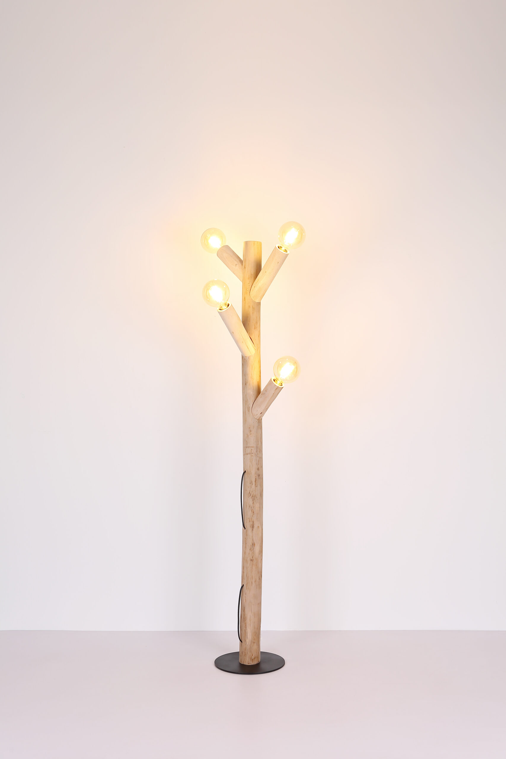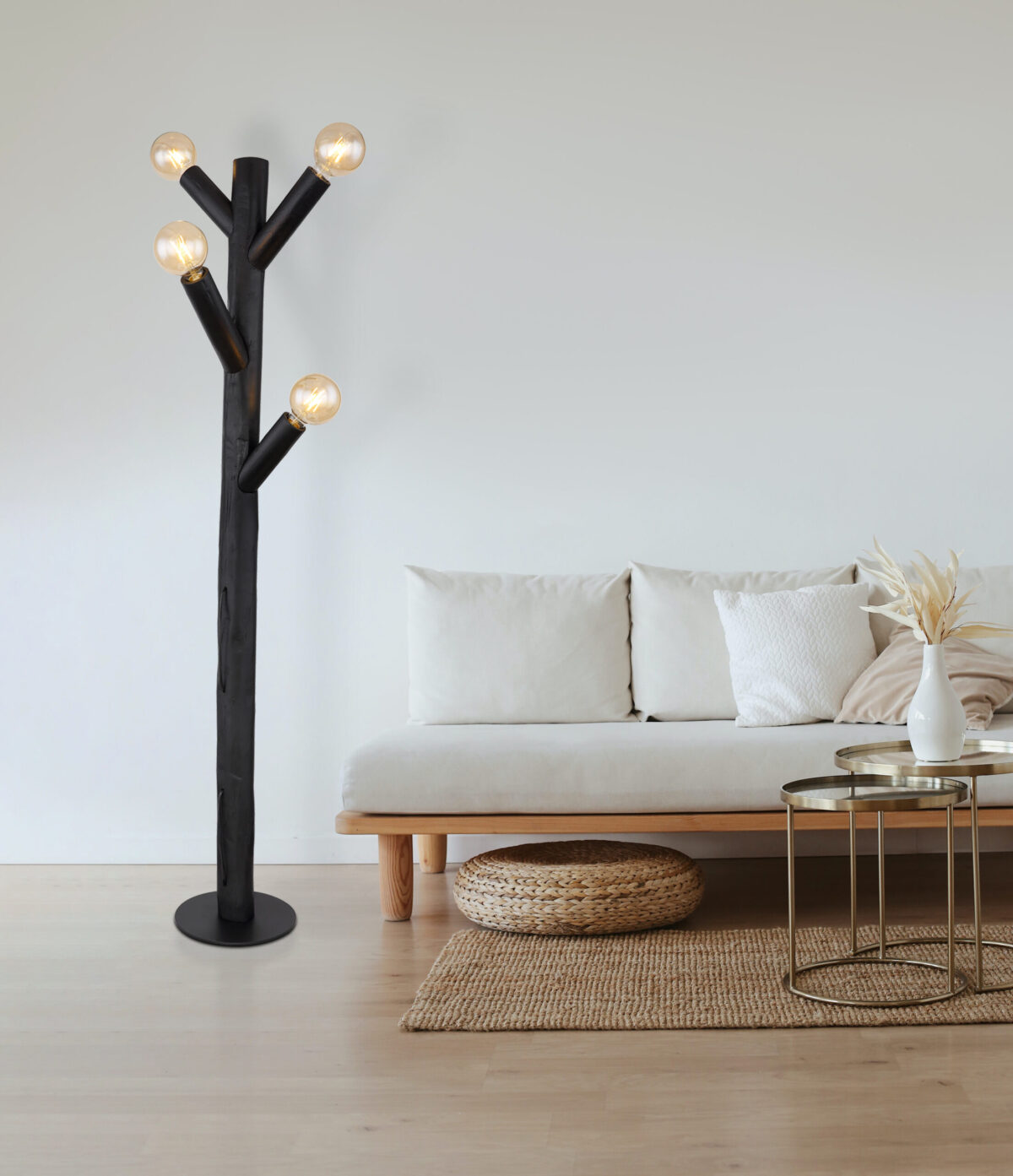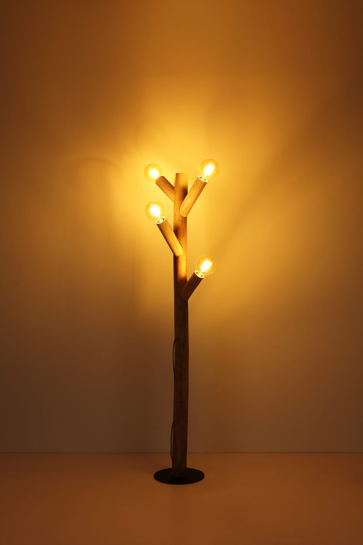 Ova podna lampa iz serije Ray (ø 25 cm) uvjerava svojim elegantnim dizajnom u izgledu drveta. Podna lampa od 150 cm sastoji se od mat crne metalne ploče na koju je pričvršćena crna drvena šipka. Ovo je opremljeno granama na vrhu, koje možete opremiti sa četiri E27 sijalice po vašem izboru. Uz pomoć prekidača, može se jednostavno uključiti i isključiti. Osim toga, kroz individualni izbor izvora svjetlosti, nudimo vam mogućnost da sami odredite boju i svjetlinu svjetla kako biste mogli dizajnirati svoju životnu atmosferu prema vašim idejama.