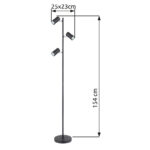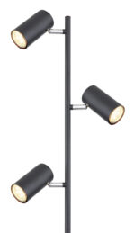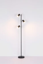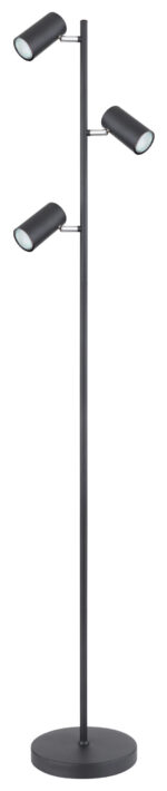 Ova podna lampa visoka 154 cm iz Robby serije je prekrasan dodatak vašem interijeru. Napravljena od crno-mat metala, podna lampa se sastoji od okruglog metalnog postolja na koji je pričvršćena šipka sa tri okretna GU10 grla u metalu. One mogu biti opremljene LED sijalicama po Vašem izboru, što Vam daje mogućnost da individualno odredite boju svjetla i svjetlinu. Osim toga, ima uključen prekidač pomoću kojeg se svjetiljka može jednostavno uključiti i isključiti. Sa ostalim modelima iste serije možete upotpuniti cjelokupnu sliku u svoja četiri zida.