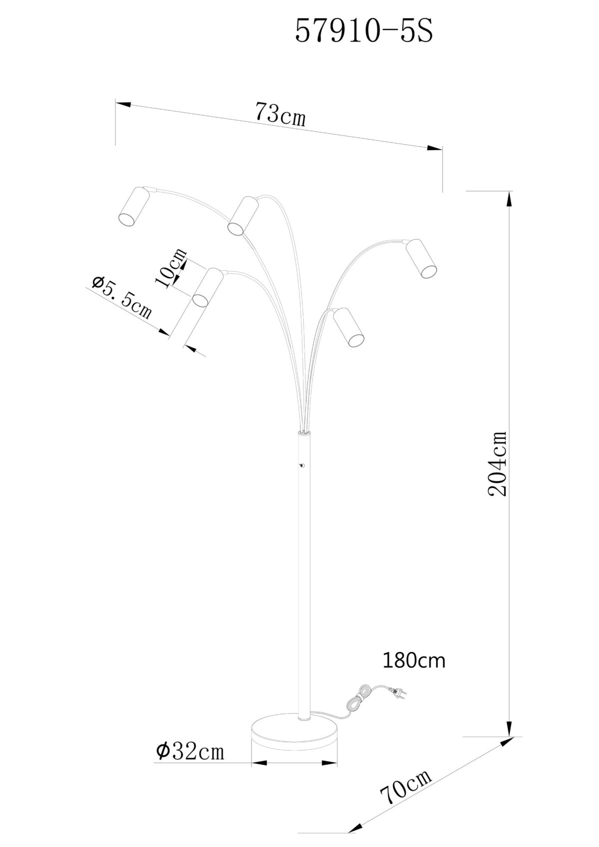 Otkrijte ROBBY, inovativnu podnu lampu koja se ističe svojom futurističkom dizajnerskom arhitekturom. Okrugla baza ROBBY-ja čini savršenu pozadinu za neobičan kišobran, koji se sastoji od jedne cijevi i završava se sa 5 zakrivljenih krakova na vrhu. Telo lampe je izrađeno od metala u mat crnoj boji, što joj daje moderan i tehnički izgled. Sama nijansa je u potpunosti izrađena od metala i ima mat finiš koji ima minimalistički izgled. ROBBY se kontroliše preko prekidača na predmetu, što olakšava podešavanje svjetline. Ova podna lampa nije samo odličan pratilac modernog dizajna, već je i odličan izbor za sve koji traže inovativno rješenje za svoju kancelariju ili dnevni boravak.