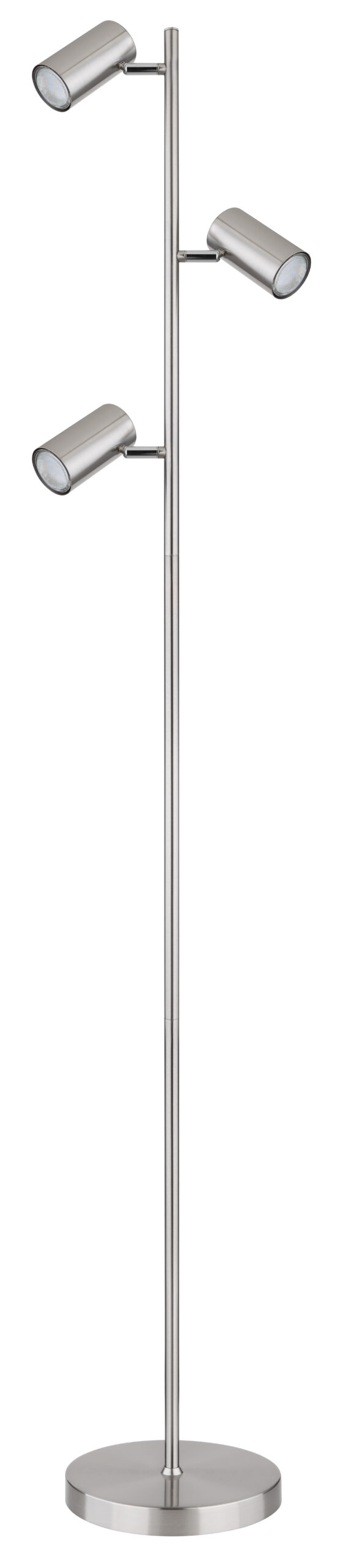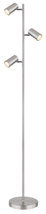 Ova podna lampa visoka 154 cm iz Robby serije je prekrasan dodatak vašem interijeru. Napravljena od nikl-mat metala, podna lampa se sastoji od okruglog metalnog postolja na koji je pričvršćena šipka sa tri okretna GU10 grla u metalu. One mogu biti opremljene LED sijalicama po Vašem izboru, što Vam daje mogućnost da individualno odredite boju svjetla i svjetlinu. Osim toga, ima uključen prekidač pomoću kojeg se svjetiljka može jednostavno uključiti i isključiti. Sa ostalim modelima iste serije možete upotpuniti cjelokupnu sliku u svoja četiri zida.