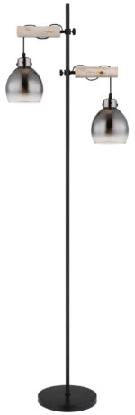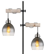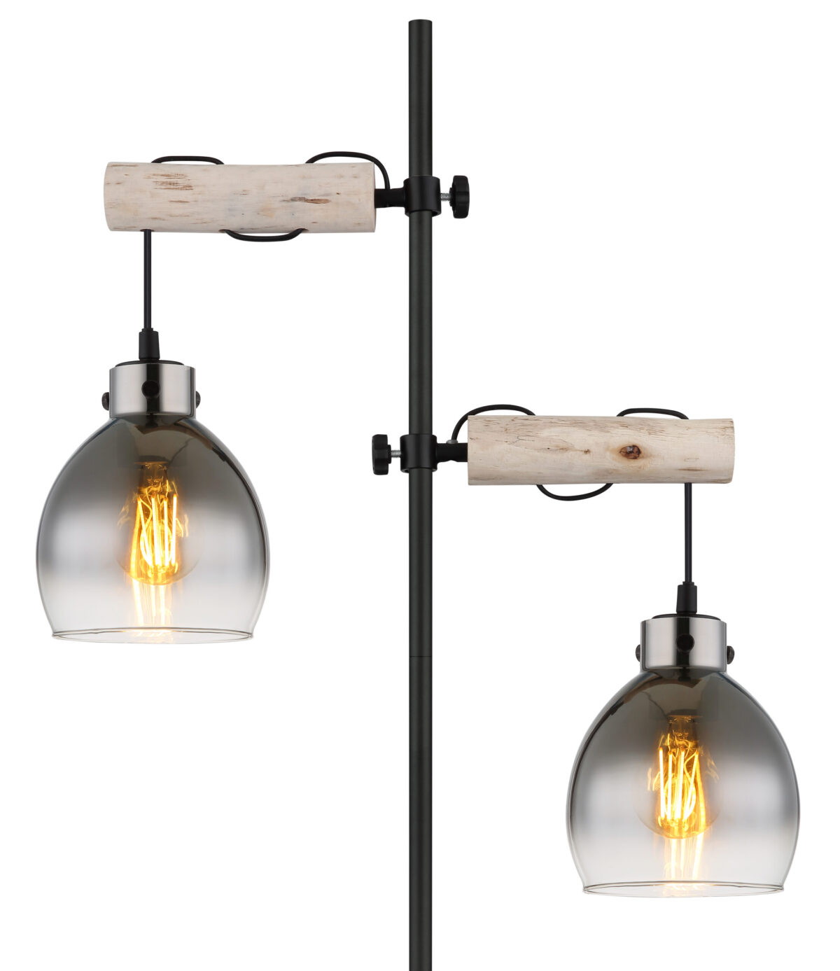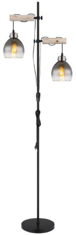 Podna lampa RYAN je pravi klasik koji se ističe svojom vintage estetikom i jednostavnim dizajnom. Tijelo je izrađeno od crnog, mat lakiranog metala, koji daje plemenit utisak. Okrugle lukovičaste čaše postavljene su na drvene grede koje podsjećaju na vješala, što daje romantičnu notu. Cijev je ravna i osigurava stabilno poravnanje svjetiljke. Nožni prekidač u kablu omogućava lako i bezbrižno regulaciju rasvjete. Podna lampa RYAN savršena je za sobe koje imaju vintage karakter ili žele stvoriti takav ambijent. Pogodan je i za modernije sobe u kojima tražite bezvremenski dizajn.