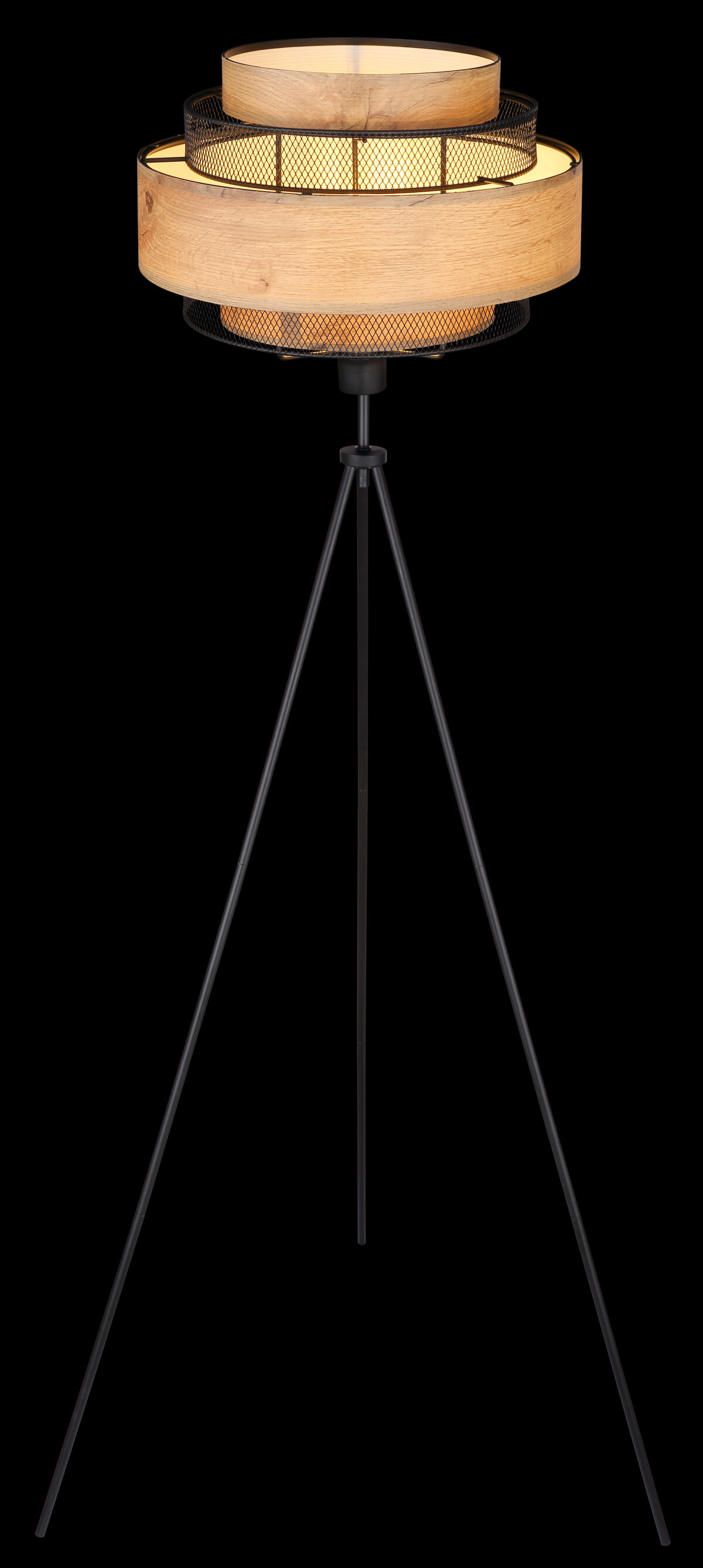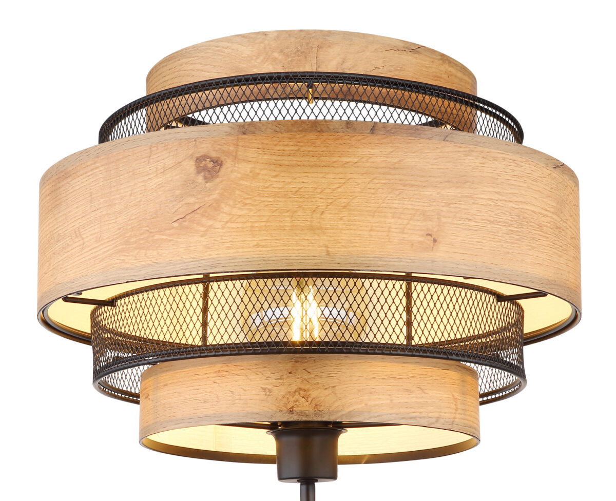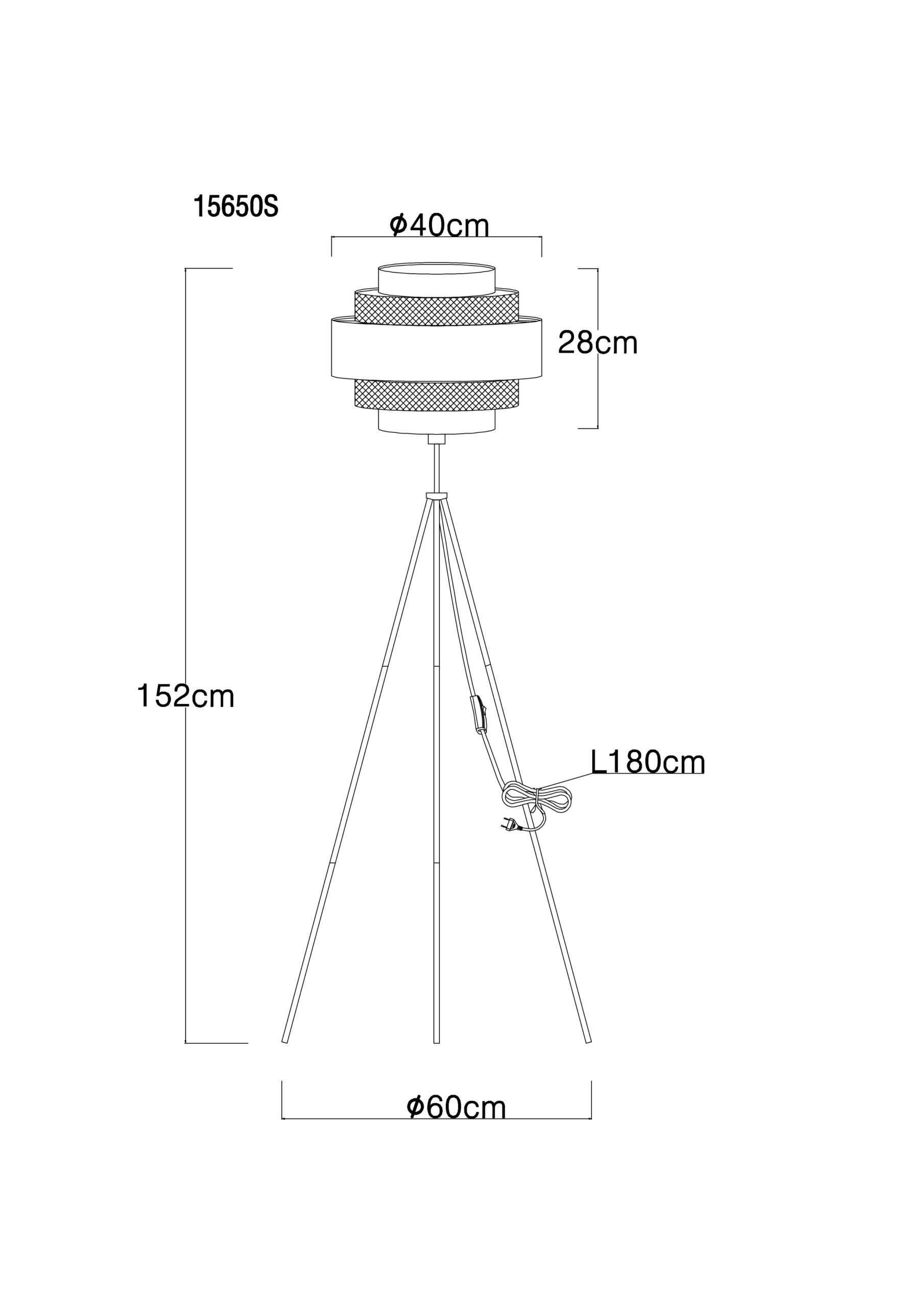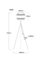 Ova sjajna podna lampa inspiriše svojim jednostavnim dizajnom. Iz crnog mat stativa od metala viri E27 utičnica na visini od 1,5m. Utičnica E27 je opremljena prelijepom sjenilom od metalnih rešetki i ukrasa u izgledu drveta (Ø60cm). Omogućava vam da odredite boju svjetla i svjetlinu do maksimalne snage od 40 vati.