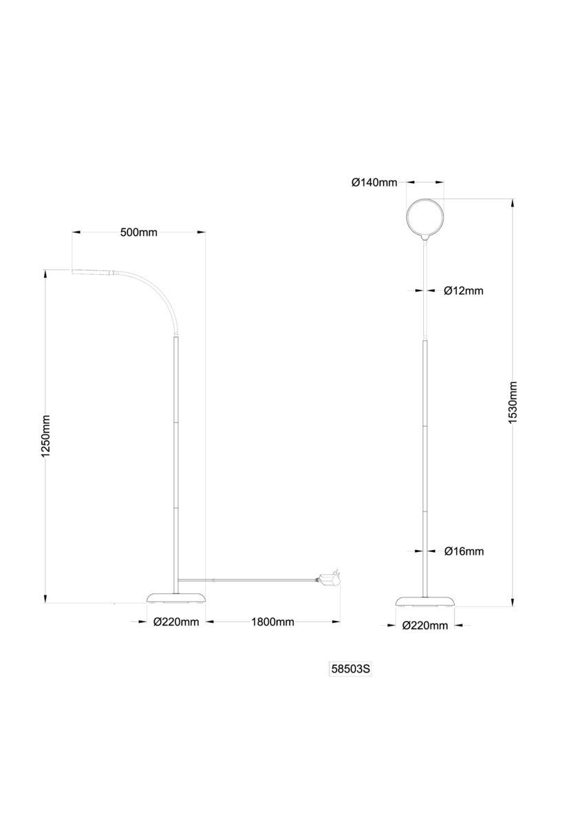 Podna lampa s ravnom cijevi i fleksibilnim spojem kombinira funkcionalni dizajn sa modernom tehnologijom. Tijelo, izrađeno od mat crnog metala i plastike, daje svjetiljci elegantan i bezvremenski izgled. Okrugla, ravna sjenilo od mat crne plastike s opalnim umetkom osigurava ravnomjernu raspodjelu svjetla bez odsjaja. Sa dužinom od 500 mm i širinom od 220 mm, lampa je idealna za dnevne ili radne prostore koji zahtevaju fleksibilno osvetljenje. Integrisana LED dioda (uključena) pruža 400 lumena svjetlosnog izlaza i temperaturu boje koja se može prigušiti bez stepena od 2700 K do 6000 K. Rad se zgodno obavlja preko prigušivača na dodir s funkcijom uključivanja/isključivanja, koji također podržava fiksiranje boja i memorijsku funkciju. Adapter je uključen. Ova podna lampa kombinuje minimalistički dizajn sa inteligentnom tehnologijom osvetljenja, što je čini savršenom za sofisticirane životne prostore ili kancelarije.