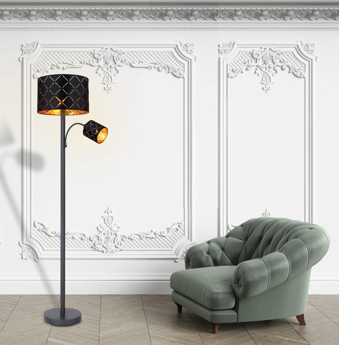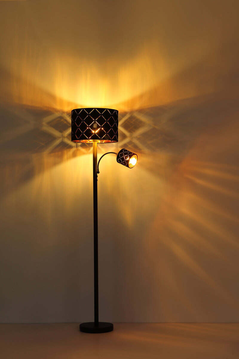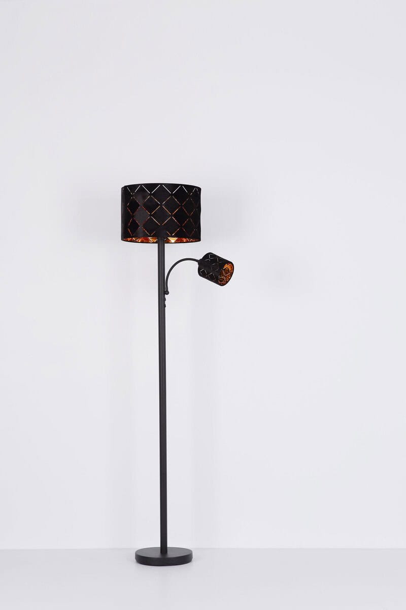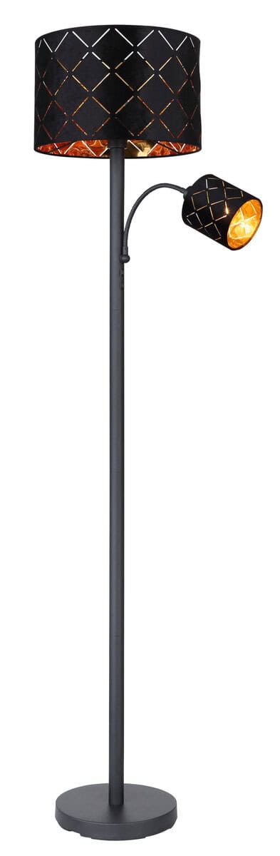 Jednostavno i elegantno! Podna lampa “SUNNA” svojim jednostavnim ali lijepim izgledom savršeno se uklapa u svaki dnevni boravak. Sa crnim metalnim stupom i dva crna sjenila od somota sa ukrasnim perforacijama i zlatnim unutrašnjim dijelom, ovu lampu možete postaviti svuda (V:162cm, DM: 35cm). Dostupne verzije E27 i E14 (svjetlo za čitanje) mogu se opremiti pojedinačno prema vašim željama (maks. 40 vati). Osim toga, postoje i drugi odlični modeli ove serije.