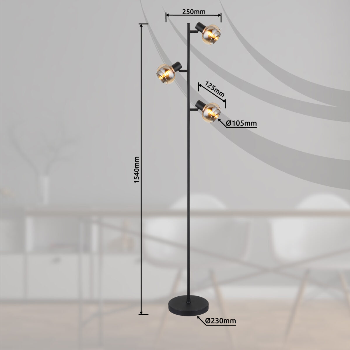 Otkrijte fascinantnu podnu lampu sa 3xE14 grla! Sa svojim mat crnim lakiranim metalnim kućištem i jedinstvenim varijantama stakla u ćilibaru i dimu, stvara impresivnu igru svjetla. Crni PVC kabel i praktični nožni prekidač u kabelu nude vam maksimalnu jednostavnost korištenja. Sa veličinom od 250x230x1540mm, ova podna lampa privlači poglede u svakoj prostoriji. E14 utičnica vam omogućava da odredite boju svjetla i svjetlinu do maksimalne snage od 40 vati. Stvorite ugodnu atmosferu i postavite stilske akcente.