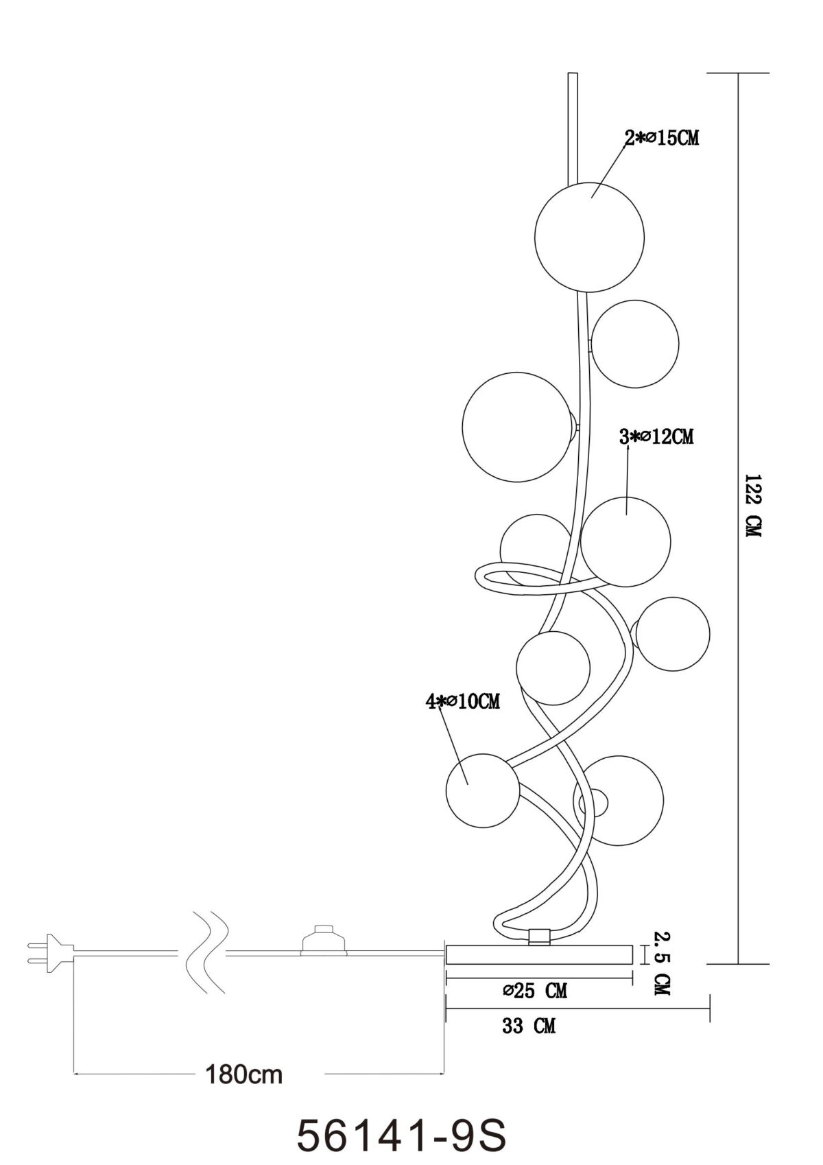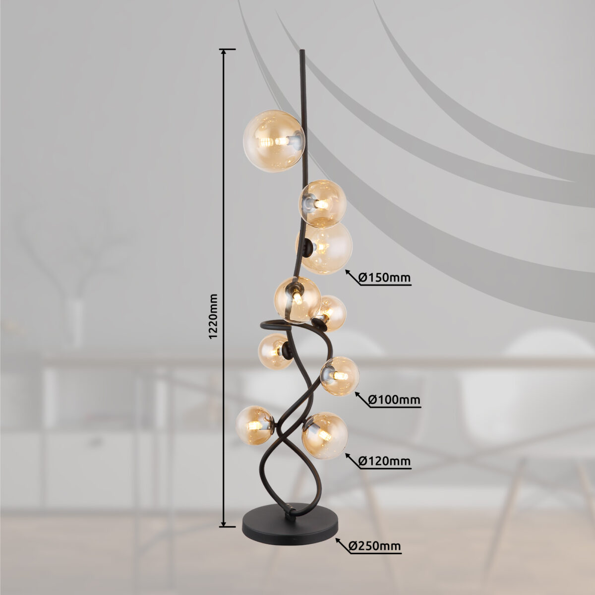 Zakrivljena podna lampa sa različitim staklenim sferama je moderan i moderan rasvjetni element koji dodaje elegantan dodir svakoj prostoriji. Tijelo podne svjetiljke je izrađeno od mat crnog metala, što daje plemenit izgled. Zakrivljena nijansa je napravljena od prozirnog stakla sa mekim jantarnim prelivom i stvara toplo i udobno osvetljenje. Podna lampa ima 9xG9 LED sijalica, svaka sa 3,5W snage, koje proizvode ukupni izlaz svjetlosti od 290 lumena. Svetla boja je prijatnih 3000K, što stvara prijatnu atmosferu. Sa promjerom od 330 mm, podna lampa ne zauzima puno prostora i može se postaviti u različite kutove prostorije. Nožni prekidač u kablu omogućava praktično rukovanje svetiljkom. Ova zakrivljena podna lampa nije samo funkcionalna, već je i privlačan element dizajna za vaš dom.