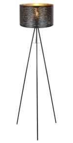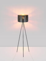 Uz ovu trokraku, izuzetno modernu podnu lampu u crnoj boji, iz TUNNO serije, postavljeni su svjetleći akcenti. Polovan e.B. u dnevnom boravku ili kancelariji, ovaj model sa svojim ukrasnim perforacijama, prečnika 38 cm i zlatnom bojom iznutra, može doprineti ugodnom okruženju. Standardni prekidač za uključivanje/isključivanje i priključni kabel dužine 1,8 metara čine ih fleksibilnim. Ima E27 grlo, što vam omogućava da slobodno birate svoju sijalicu. Preporučujemo LED lampe, zbog njihove uštede energije i dugovečnosti.