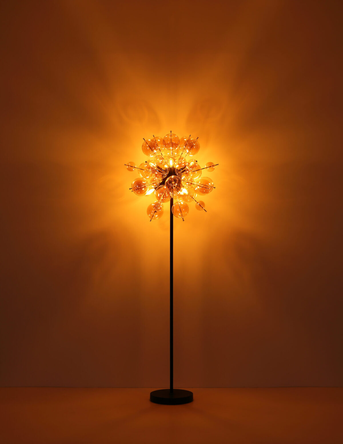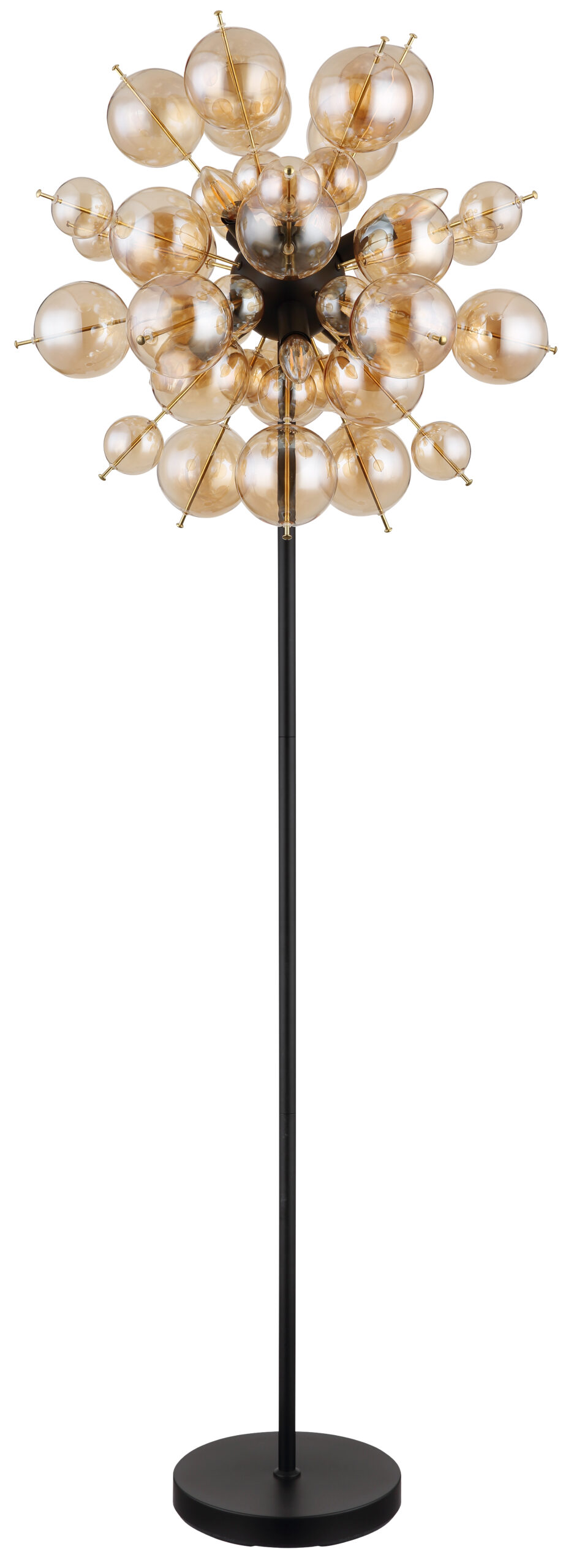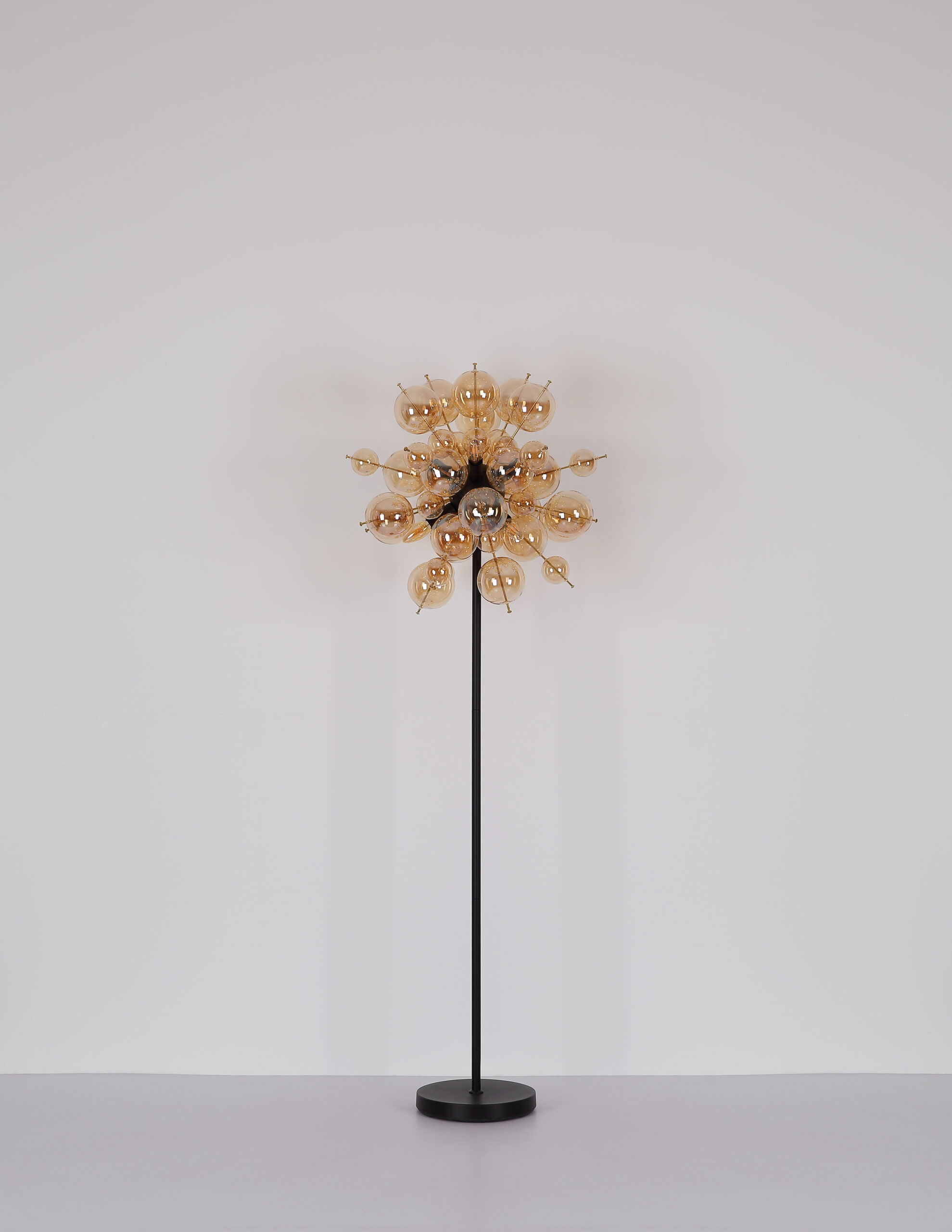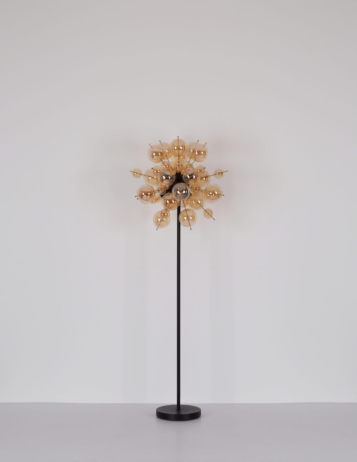 Podna lampa UDO kombinuje moderan dizajn sa daškom ekstravagancije. Sa svojim zaobljenim i elegantnim izgledom, prava će privući oči u svakoj prostoriji. Šipke lampe su opremljene kuglicama različitih veličina, što čini zanimljiv i razigran izgled. Tijelo UDO podne lampe izrađeno je od mat crnog metala, dok su kugle na šipkama zlatne boje. Ova kombinacija daje lampi plemenit i moderan karakter. Sjenilo je napravljeno od staklenih kuglica boje ćilibara koje proizvode toplo i ugodno svjetlo. Sa prečnikom od 550 mm, ova podna lampa pravi je vrhunac i postavlja stilski naglasak u svakoj prostoriji. Nožni prekidač u kablu olakšava paljenje i gašenje svjetla bez saginjanja. Dajte svom životnom prostoru moderan i ekstravagantan dodir uz UDO podnu lampu. Uronite svoj dom u toplo i ugodno svjetlo i uživajte u jedinstvenoj atmosferi.