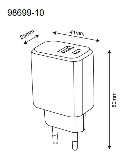 Pravokutni USB utikač za napajanje s USB-A i USB-C izlazom pruža moćnu i svestranu opciju punjenja za vaše uređaje. Kompaktnog i funkcionalnog dizajna koji se neprimjetno uklapa u moderna životna i radna okruženja, ovaj utikač je idealan za svakodnevnu upotrebu. Mat, bijelo plastično kućište daje utikaču jednostavan i elegantan izgled. Dimenzije od 80 mm dužine i 41 mm širine čine ga praktičnim i štedi prostor. Sa snagom od 10W i izlazom od 5V DC/2A, ovaj utikač za napajanje pruža pouzdanu brzinu punjenja za pametne telefone i druge USB kompatibilne uređaje. Dvostruki izlaz sa USB-A i USB-C omogućava vam da koristite različite vrste kablova u isto vreme, što ga čini posebno fleksibilnim i praktičnim. Savršen za dom, ured ili u pokretu, ovaj utikač nudi pametno rješenje za efikasno punjenje.