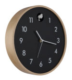 Okrugli zidni sat CLOCKY WOOD NATURAL kombinuje tradicionalni dizajn sa modernim elementima. Kućište od prirodnog drveta i crnog mat medijapana daje satu klasičan, ali savremen izgled. Sat ima kazaljke i brojeve u bijeloj boji koji nadopunjuju prirodno drvo i mat crnu boju tijela. Vrhunac ovog zidnog sata je integrirana funkcija kukavice, koja dodaje šarmantan i tradicionalan dodir. Za korištenje sata su potrebne 2 x LR14 baterije, koje su ekskluzivne. Sa svojim okruglim dizajnom i jasnim linijama, CLOCKY WOOD NATURE se harmonično uklapa u široku lepezu životnih prostora i ne samo da govori o vremenu, već i stvara nostalgičnu atmosferu svojim zovom kukavice.