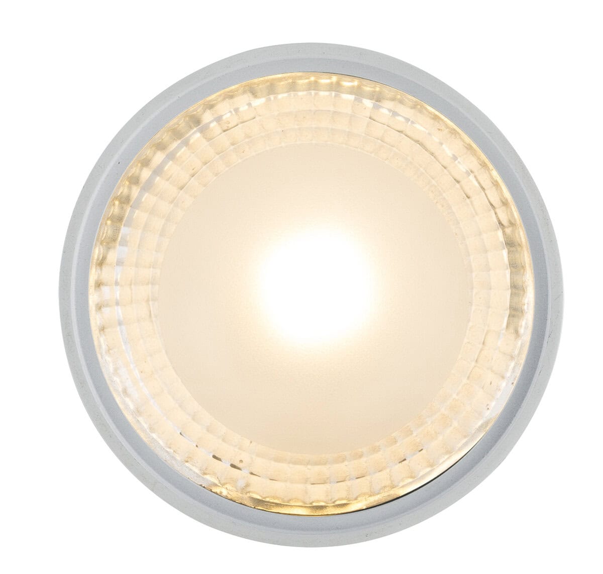Ova prepoznatljiva plafonska lampa savršeno se uklapa u moderne stilove života zahvaljujući svom jednostavnom dizajnu. Sa prečnikom od 11,3cm, idealan je za montažu na ofsetne plafonske elemente. Posebno je skladan raspored nekoliko svjetiljki. Metalni cilindar je obojen mat bijelom bojom i furniran djelomično laminiranim staklom. Integrisani LED od 12W proizvodi toplo bijelo svjetlo od 980lm.