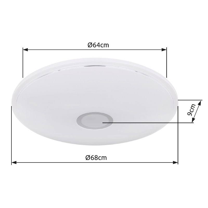 Okrugla plafonska lampa CONNOR Smart Home nije samo stilski element dizajna, već je i tehnološki sofisticirana. Tijelo je izrađeno od bijelog metala, a sjenilo je od opal akrila sa šik hromiranim prstenom. Plafonsko svjetlo se može prigušiti i nudi mogućnost promjene boje. Boje se mogu čak i fiksirati, a lampa ima praktičnu memorijsku funkciju. Uz priloženi daljinski upravljač, sve funkcije se mogu jednostavno kontrolirati. Plafonska lampa CONNOR Smart Home ima prečnik od 680 mm i snagu od 30 W sa snagom od 2250 lumena. Temperatura boje može se podesiti od 3000K do 6500K kako bi se prilagodio ambijent. Plafonska lampa je kompatibilna sa sistemima pametne kuće, a može se kontrolisati i pomoću Alexa. Multifunkcionalni rasvjetni element za svaki dom!
