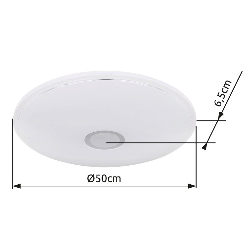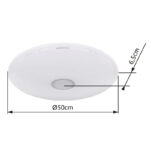 Ova okrugla plafonska lampa Connor (Ø50cm) ističe se svojom funkcionalnošću. Napravljena od plastike u svjetlucavoj optici, ova plafonska lampa s mogućnošću zatamnjivanja pruža maksimalno 2400 lumena (30W LED) jakog svjetla. Ovo se može kontrolisati i popraviti u nekoliko faza (boja) pomoću priloženog daljinskog upravljača (od tople bijele 3000K do hladno bijele 6000K). Ova unutrašnja svjetiljka može se koristiti u spavaćim sobama, prednjim sobama, dnevnim boravcima i blagovaonicama. Također je kompatibilan sa Google Home i Alexa. Ovom Smartlight lampom se lako može upravljati pomoću aplikacije Tuya Smart (Android TM/IOS). Upravljanje glasom je jednostavno uz Amazon Echo Tm ili Google Home.