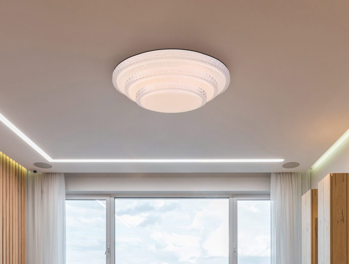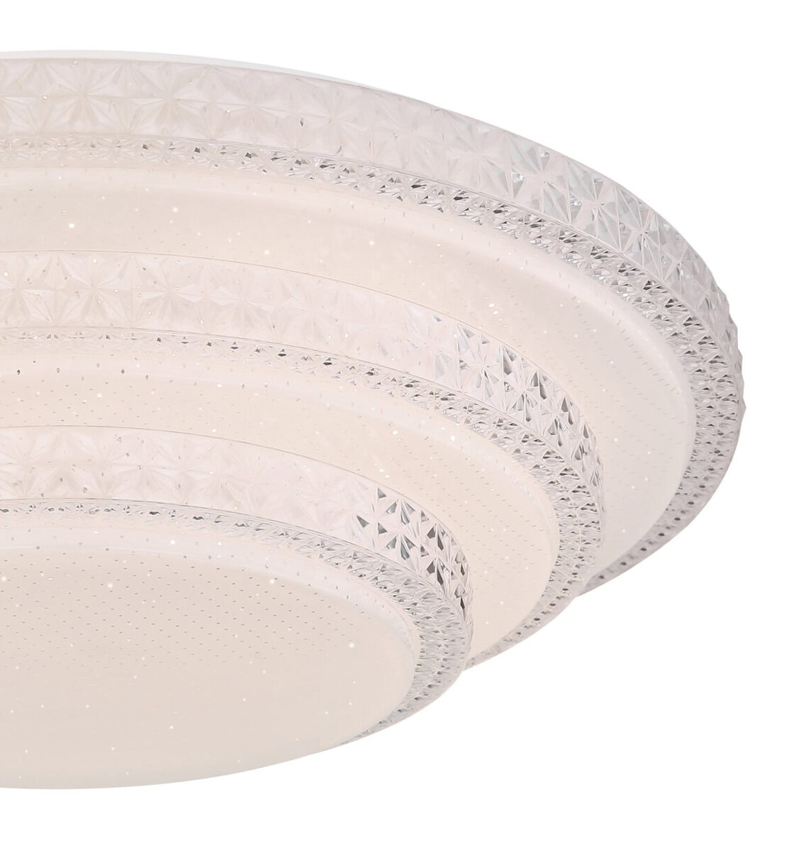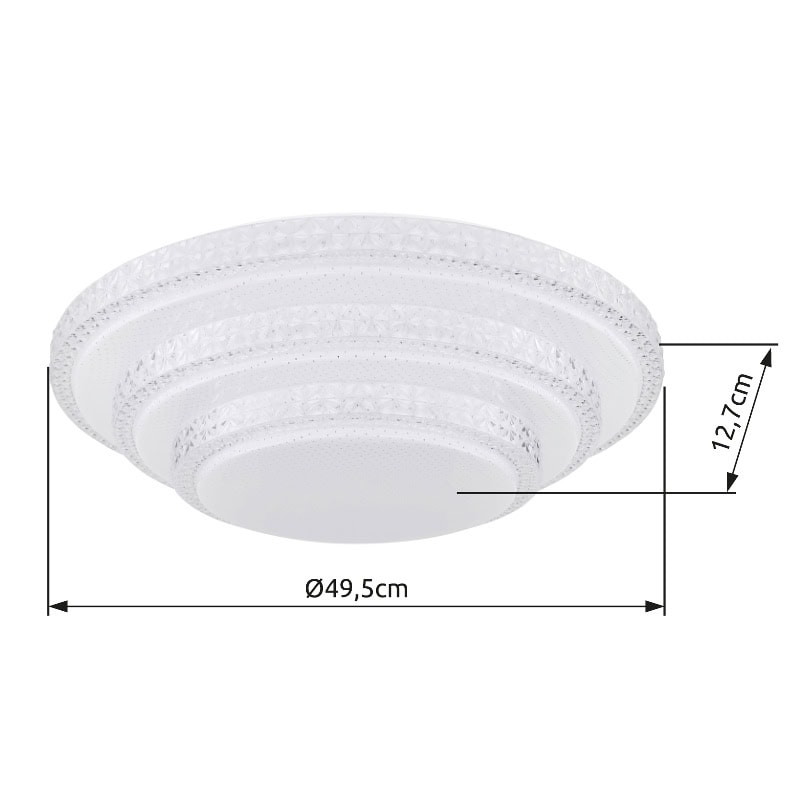 Ova ekskluzivna plafonska lampa MAGNIFIQUE (Ø 49 cm) od opal-belog akrila sa blistavim dekorom daje performanse i funkcionalnost. Pomoću priloženog daljinskog upravljača, boja svjetla može se regulirati i fiksirati u nekoliko faza između ugodnog toplog bijelog 3000K i hladnog bijelog 6500K svjetla. Sa uključenom LED sijalicom od 30 W, ova plafonska lampa pruža maksimalno 2300 lumena jakog svetla, može se prigušiti po želji i prilagoditi situaciji. Osim toga, ova lampa ima funkciju noćnog svjetla. Ovom Smartlight lampom se lako može upravljati pomoću aplikacije Tuya Smart (Android TM/IOS). Upravljanje glasom je jednostavno uz Amazon Echo Tm ili Google Home.