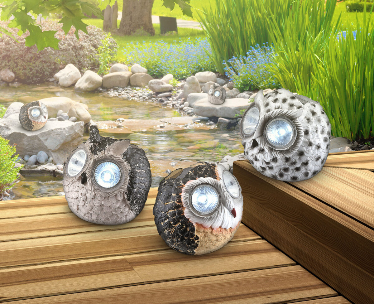 Ova solarna lampa izrađena od visokokvalitetnog umjetnog kamena otpornog na vremenske uvjete puni se sunčevom svjetlošću tokom dana da bi noću očarala neodoljivim pogledima. Moderni vrtni dodaci dostupni su u tri različite verzije i opremljeni dugotrajnom baterijom.