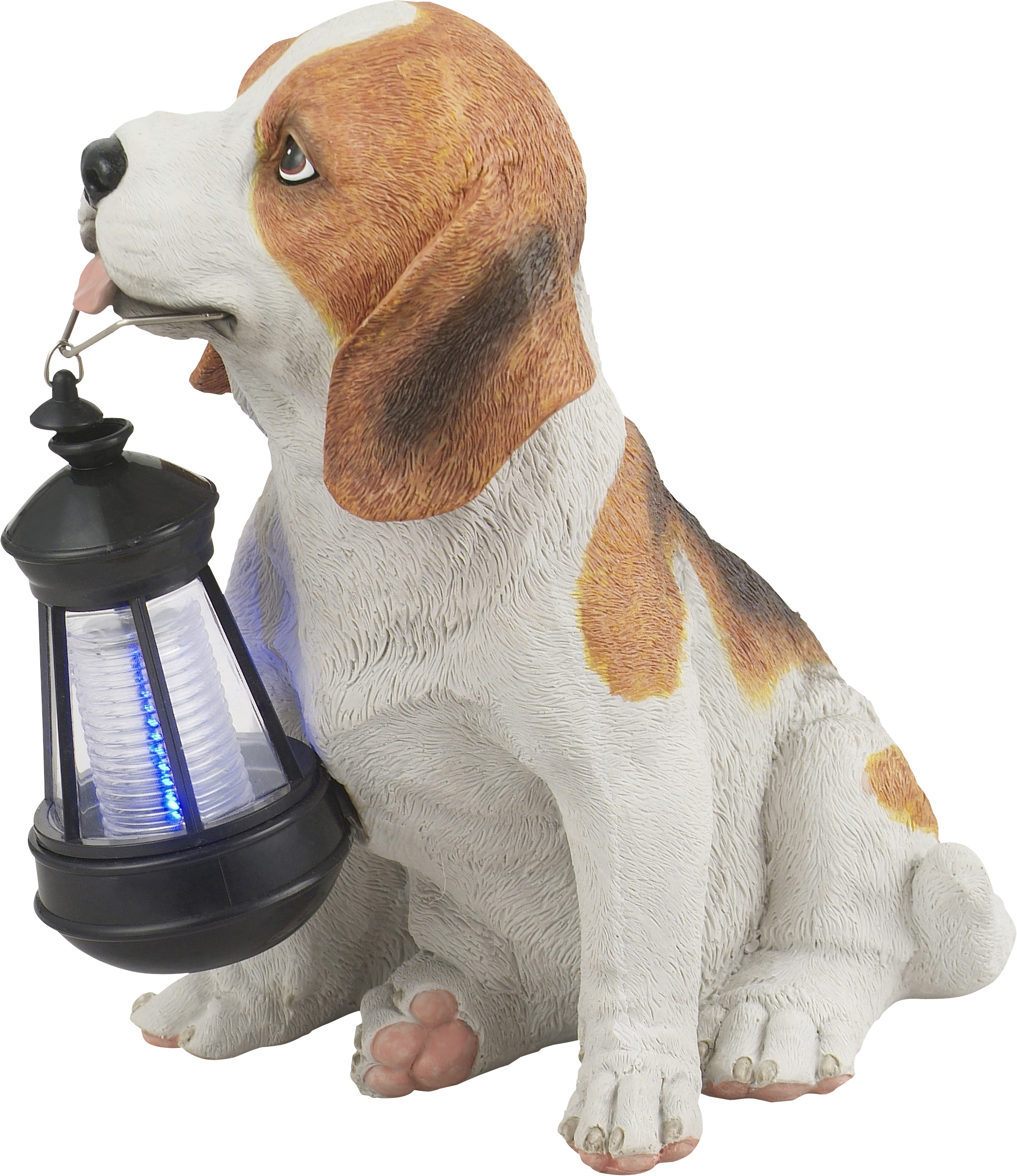 Lijepa opcija dekoracije je ova solarna lampa od smeđe bijele plastike. Zbog oblika psa koji ima fenjer u ustima, ova lampa odmah upada u oči. Zbog IP44 stepena zaštite, lampa od 25 cm je takođe apsolutno pogodna za spoljašnju upotrebu.