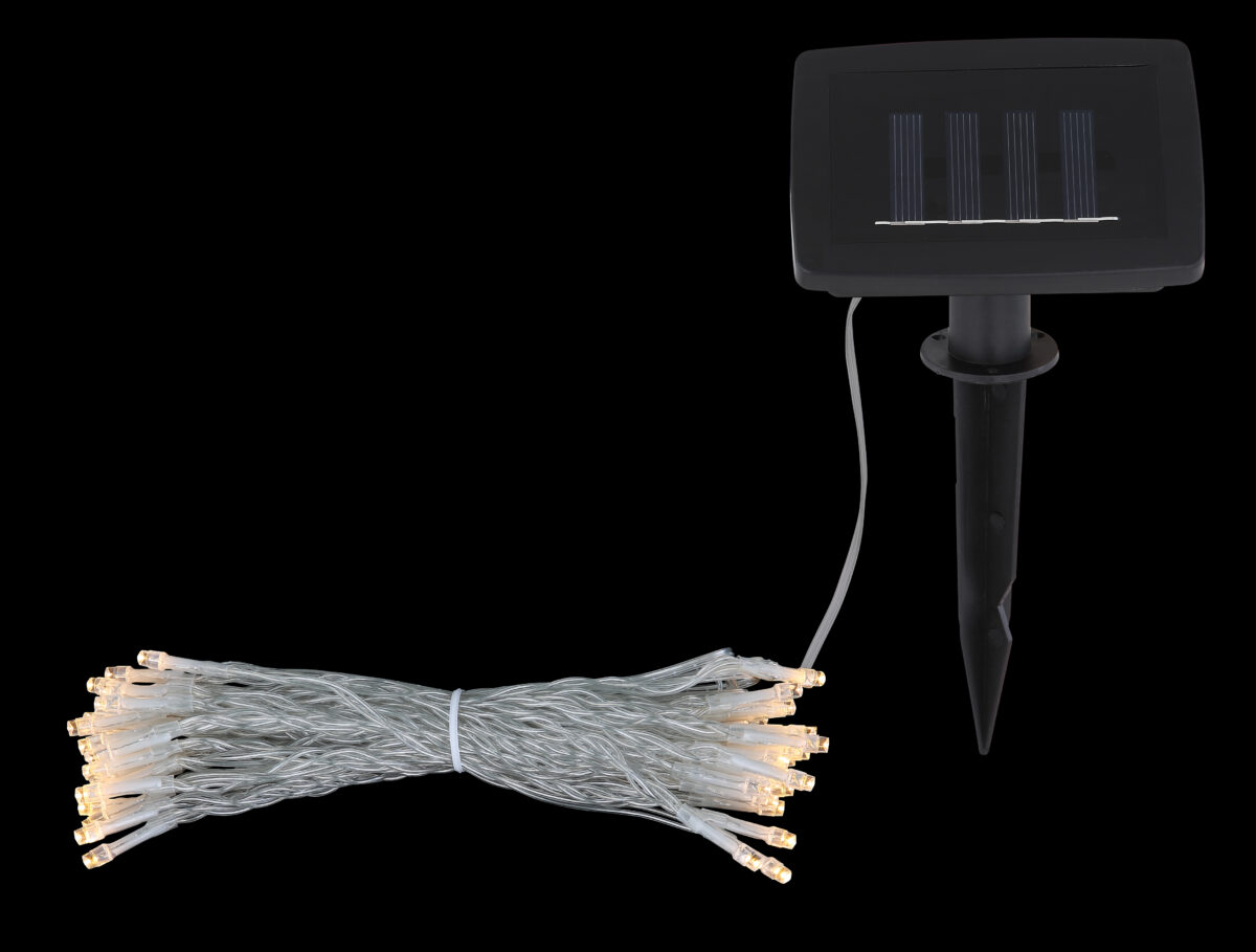 Sa ovom odličnom solarnom lampom, imate najbolju opremu za ukrašavanje. Lanac dug 10 metara, napravljen od crne i prozirne plastike, opremljen je sa 50 sijalica i od prve sijalice do solarnog panela ima 3 metra, što ga čini veoma fleksibilnim. Zahvaljujući klasi zaštite IP44, pogodan je i za upotrebu na otvorenom.