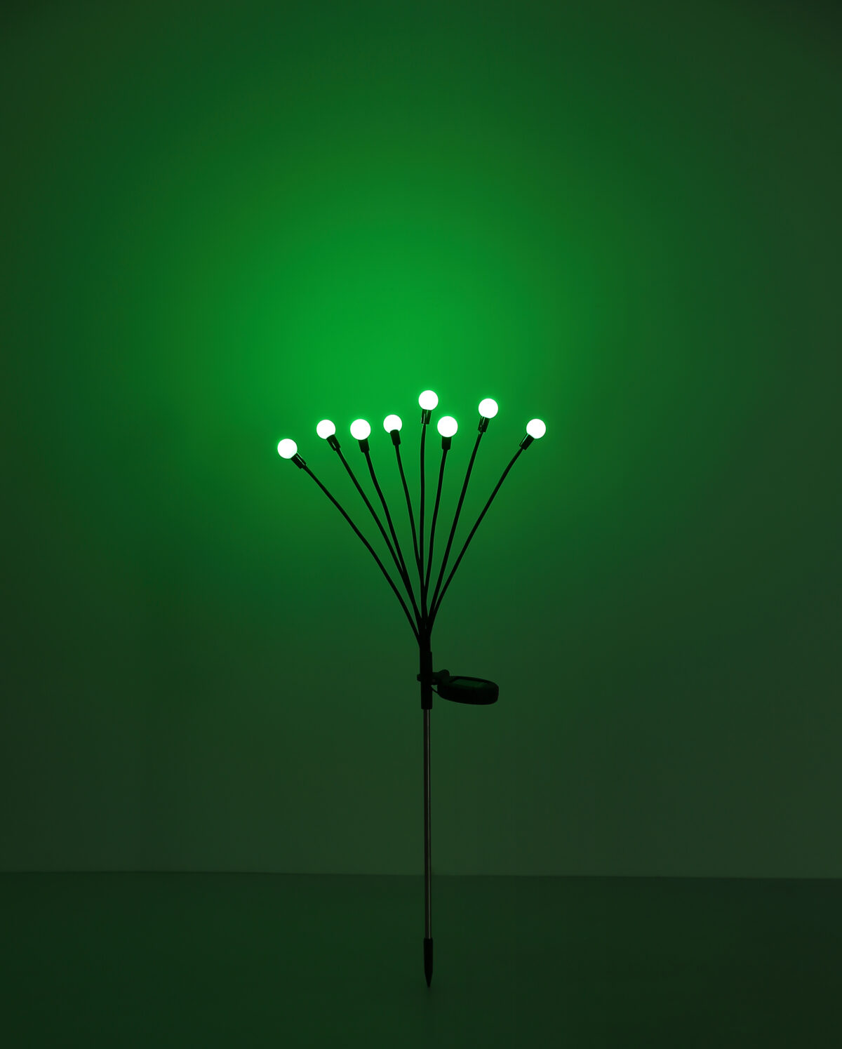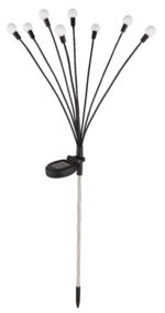 Zapanjujuća solarna svjetlost koja će dodati toplu atmosferu vašem prostoru. Lampa je izrađena od nerđajućeg čelika i crne mat plastike, koja nežno filtrira svetlost. Opalna plastika je jedinstvena i daje lampi poseban štih. Sa dužinom od 200 mm, širinom od 120 mm i visinom od 700 mm, ova solarna lampa je prava privlačna za oči u svakoj prostoriji. Klizni prekidač omogućava jednostavno rukovanje. Ova svetiljka se isporučuje sa 8x RGB LED 0.06W 3.2V. Uključena je i baterija (AAA 300mAh 1.2V). Nadamo se da sa ovim solarnim svjetlom možete podići svoje sobe na novi nivo!