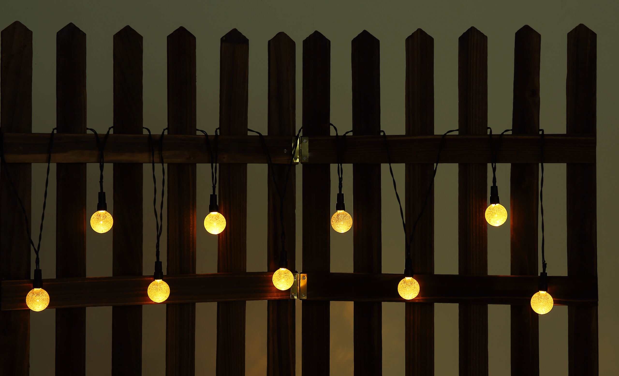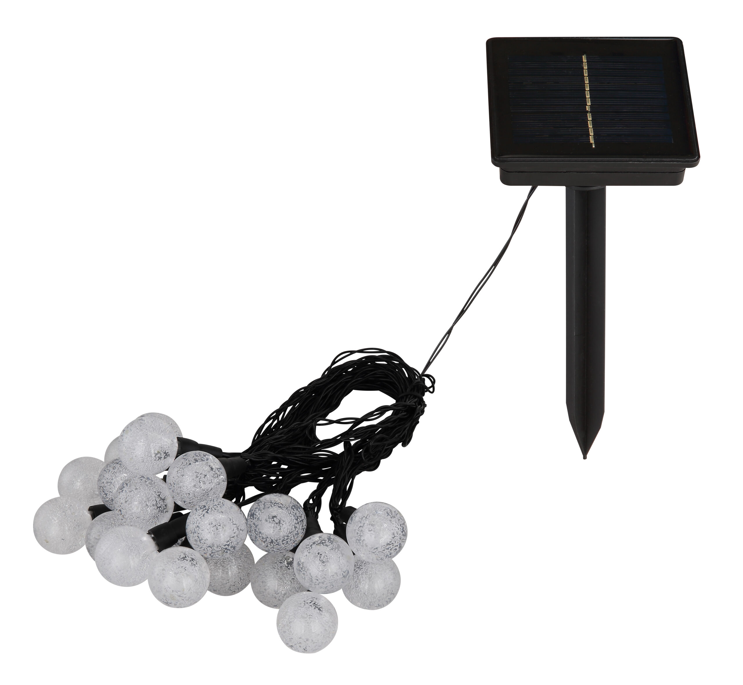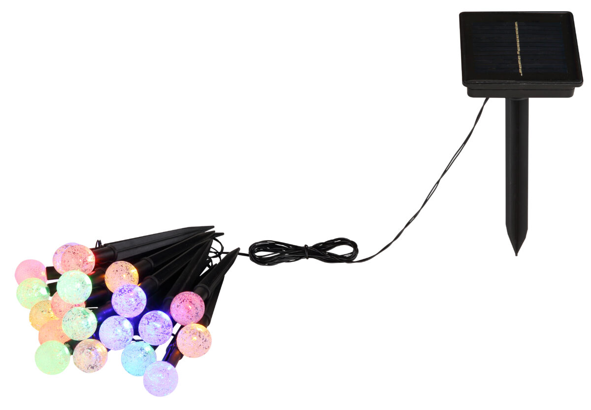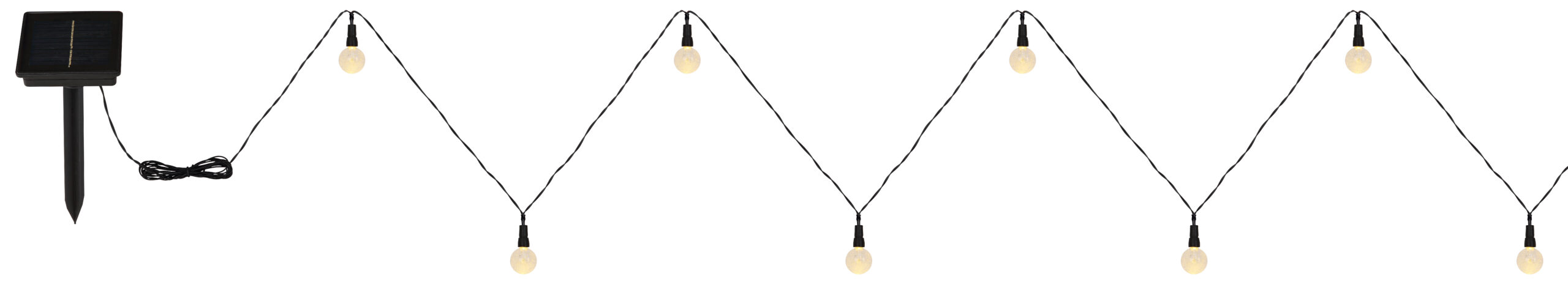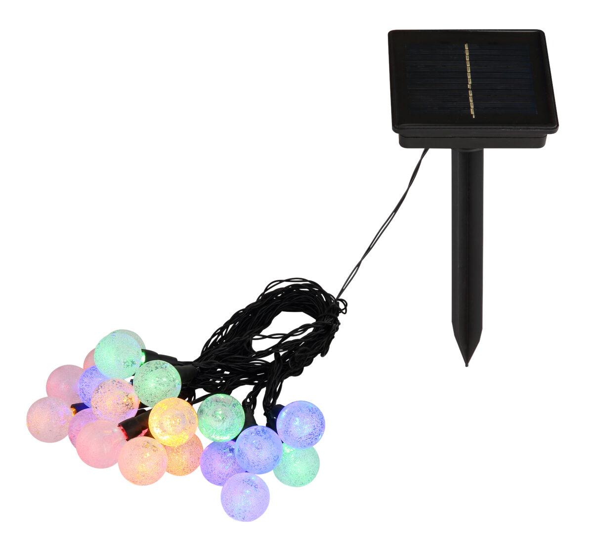 Zapanjujuća solarna svjetlost koja će dodati toplu atmosferu vašem prostoru. Lampa je izrađena od crne mat plastike i prozirne plastike koja nježno filtrira svjetlost. Sa dužinom od 7700 mm, širinom od 30 mm i visinom od 150 mm, ova solarna lampa je prava privlačna za oči u svakoj prostoriji. Lampa ima izmjenjivač slavina i RGB mijenjač boja. Postoje četiri različita režima svetla: 3000K, 3000K trepćući, šareno i šareno treptanje. Ova svetiljka se isporučuje sa 20x RGBW LED 0,06W 3V. Baterija (14500 500mAh 3.7V) je također uključena u obim isporuke i ima vrijeme gorenja od cca. 2 sata. Razmak između LED dioda je 300 mm, a broj sijalica (lanca) je 20. Dužina dovodnog kabla je 2000 mm, a dimenzije solarnog panela su 9,5 x 9,5 x 23 cm.
