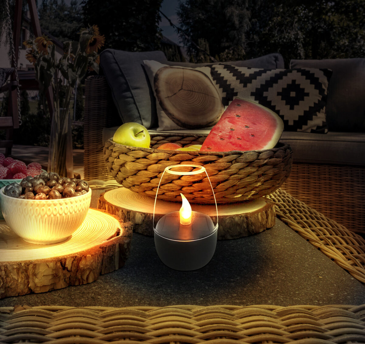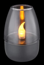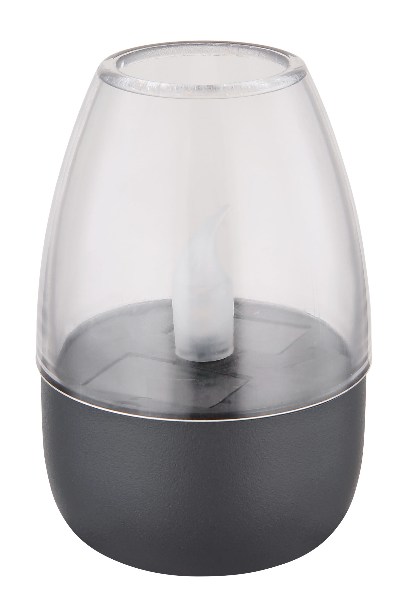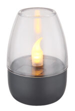 Ova prekrasna solarna lampa uvjerava svojim jednostavnim dizajnom. Na okruglom postolju od sivog nerđajućeg čelika (Ø 6 cm) nalazi se LED izvor svjetlosti u obliku plamena koji je uklopljen u prozirnu hladovinu. Sijalica sa efektom plamena emituje toplo bijelo svjetlo od 1800 Kelvina i može se uključiti i isključiti pomoću kliznog prekidača. Osim toga, ovo solarno svjetlo ima IP44 stepen zaštite od prskanja vode, što ga čini savršenom za upotrebu na otvorenom.