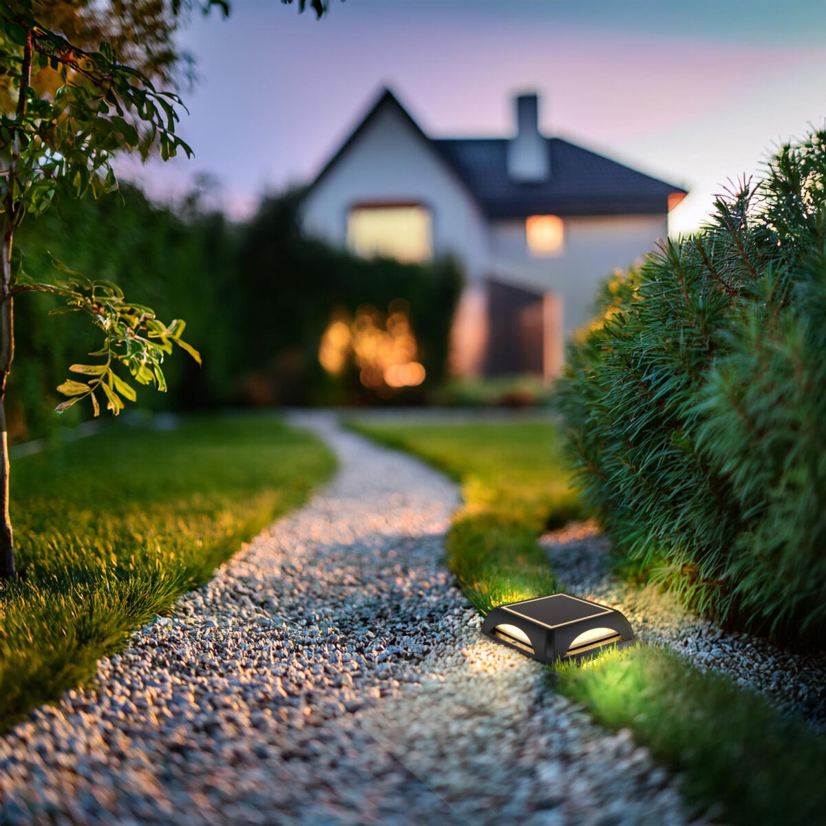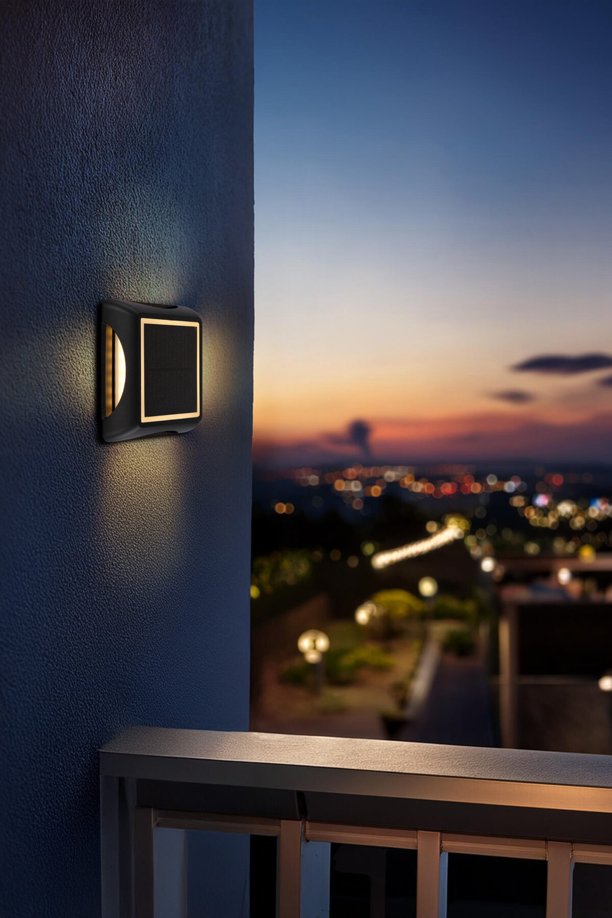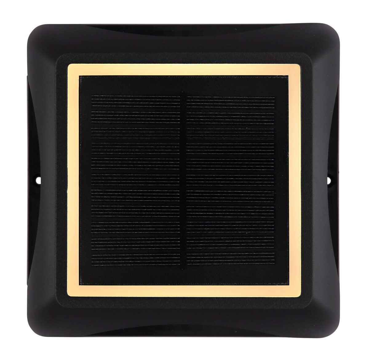 SOLARNA SVJETLA ALUMINIJUMSKA LIJENA CRNA MATA uvjerava svojom svestranošću kao zidna lampa ili svjetiljka sa uzemljenim vrhom. Kvadratni oblik i kućište od crnog livenog aluminijuma daju mu moderan štih. Opalno plastično sjenilo pruža ujednačeno osvjetljenje, dok izmjenjivač slavina sa prekidačem pritiska nudi tri nivoa svjetline. Sa temperaturom svjetlosti od 3000K i IP65 ocjenom, ovo solarno svjetlo je idealno za osvjetljavanje vrtnih staza ili kao ukrasna zidna svjetiljka.