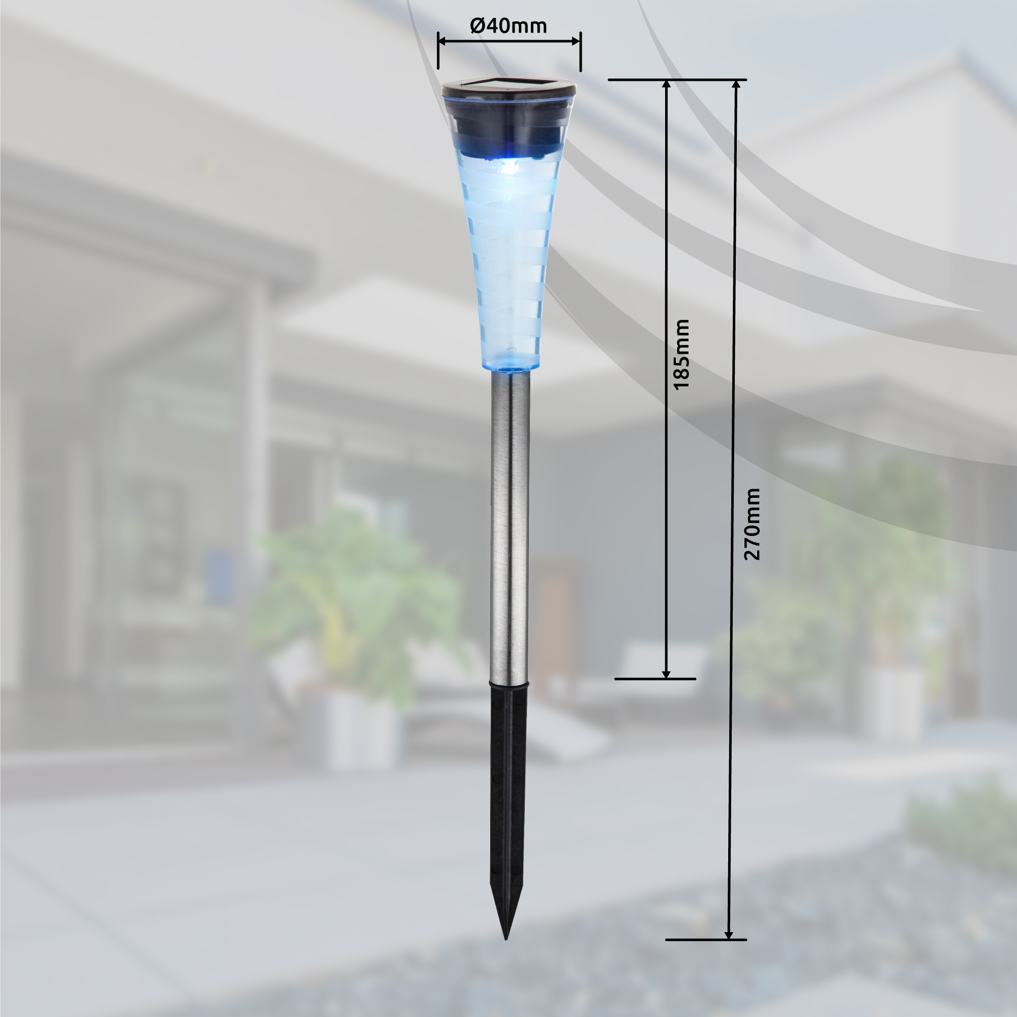 Kombinacija nerđajućeg čelika, prozirne i satenske plastike kao i mogućnost promene svetle boje donosi jedinstven izgled vašem otvorenom prostoru. Navedeni IP44 stepen zaštite čini ovu solarnu lampu apsolutno pogodnom za spoljašnju upotrebu. Ova solarna lampa od 27 cm daje šareno svjetlo oko osam sati kada je potpuno napunjena. (Set od 5)